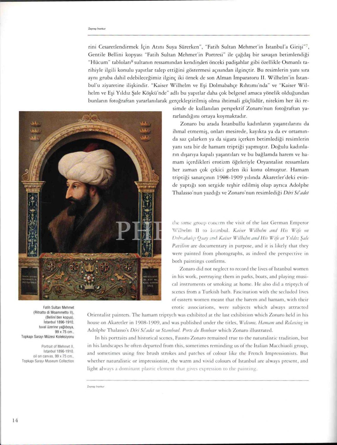 DOĞUMUNUN 150. YILINDA OSMANLI SARAY RESSAMI FAUSTO ZONARO, proje koordinatörü: Erol Makzume, Yapı Kredi Yayınları, 2004, 175 sayfa, 23x29 cm