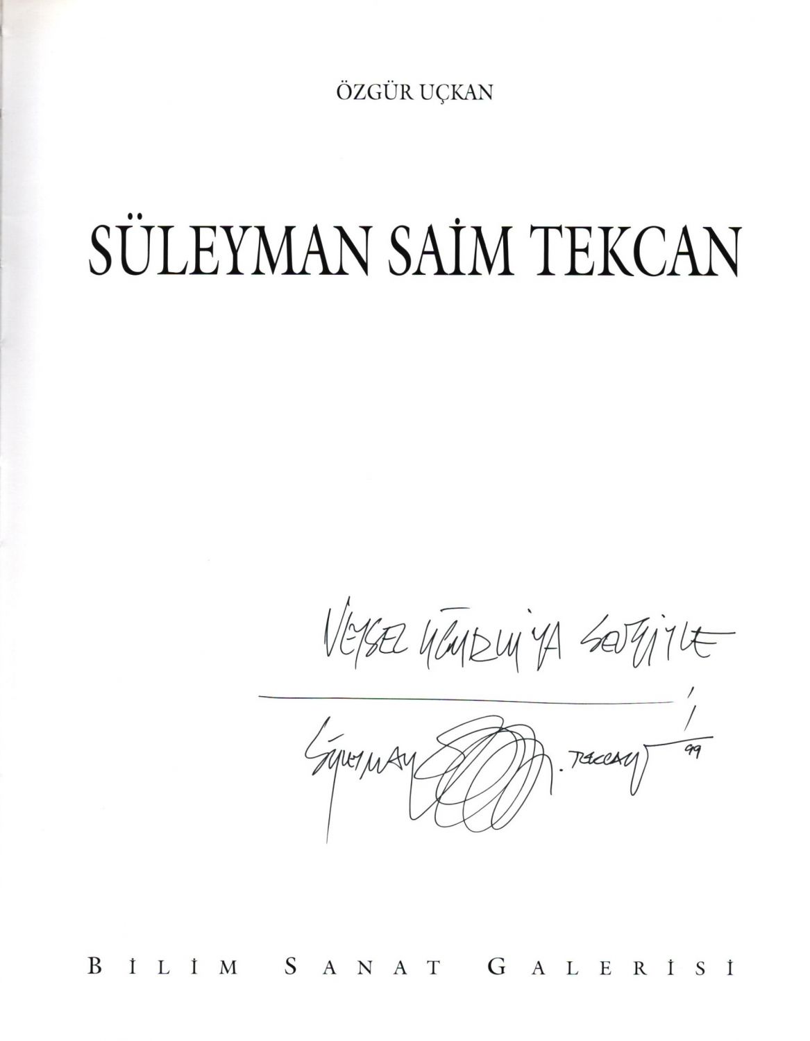 Süleyman Saim Tekcan´dan Veysel Uğurlu´ya ithaflı ve imzalı SÜLEYMAN SAİM TEKCAN, Özgür Uçkan, Bilim Sanat Galerisi, 1996, 255 sayfa, 24x31 cm