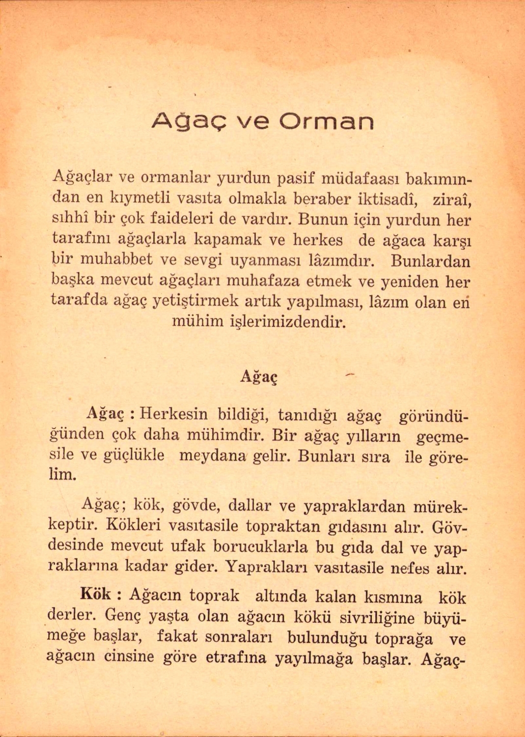 Ağaç ve Orman Bilgi ve Sevgisi, Mithat Eryılmaz, 1937, 16 sayfa, 13x19 cm