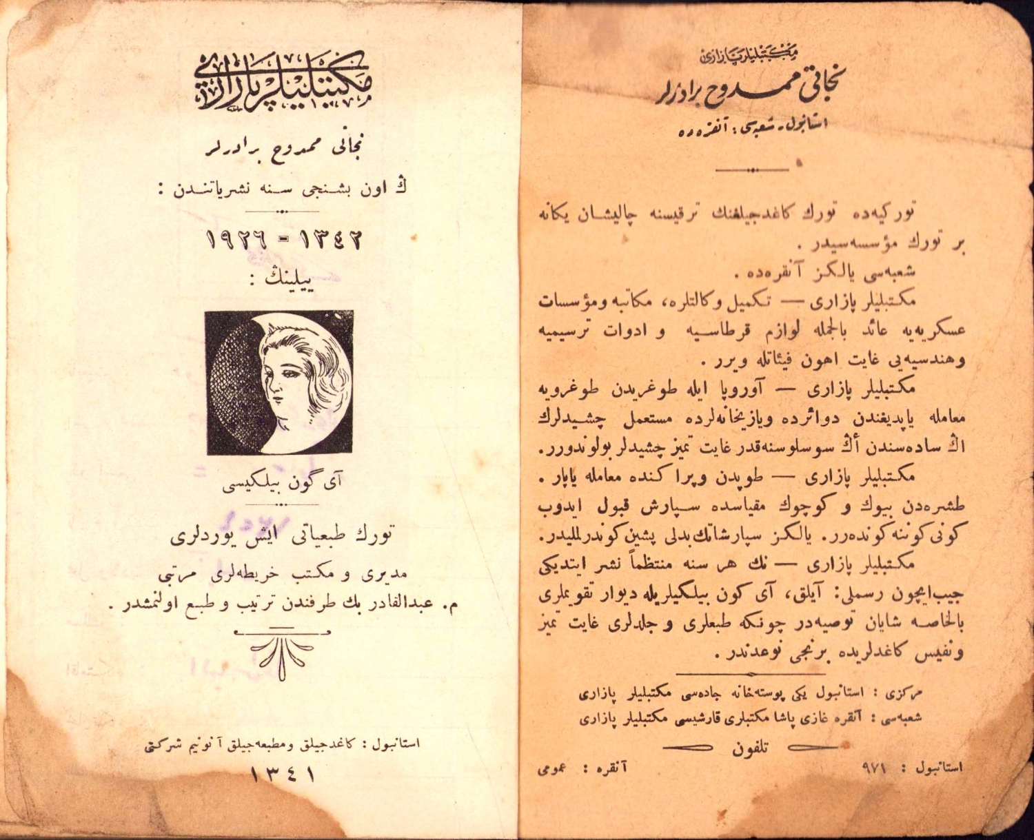 Necati Memduh Biraderleri reklamlı cep ajandası, Atatürk görselli, 1342, 9x14 cm, arka kapak yok