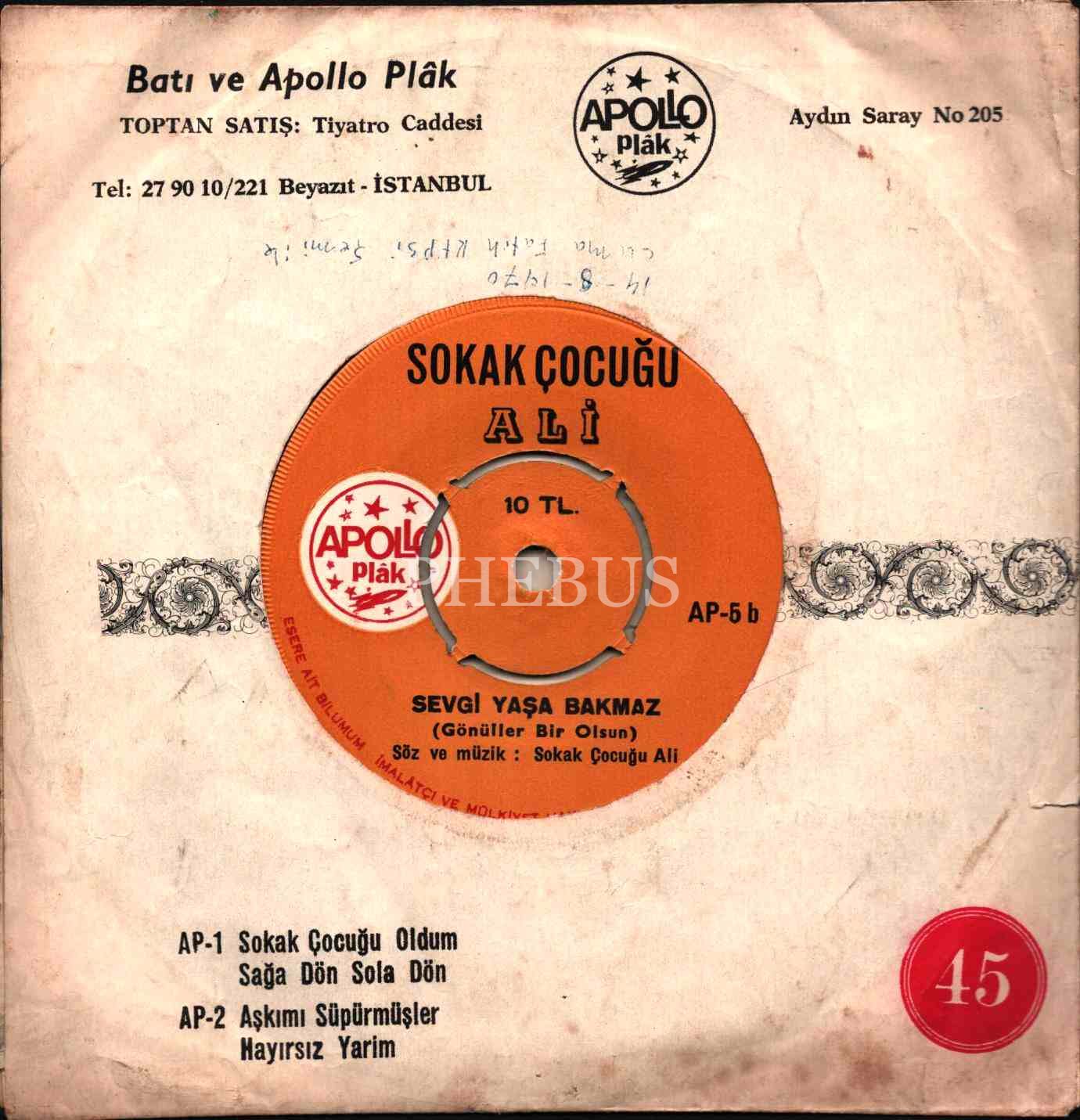 SOKAK ÇOCUĞU ALİ - Garibin Mezarı / Sevgi Yaşa Bakmaz (Kapak Ap1-2, PlakAp 5 serisine aittir)