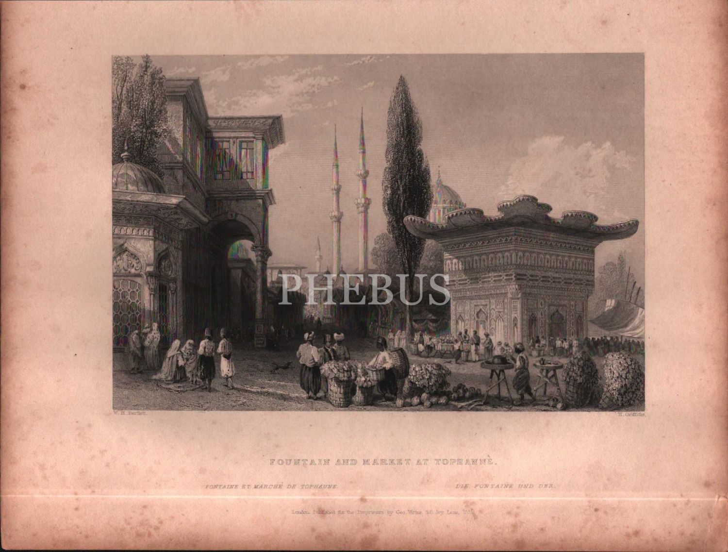 Tophane´de çeşme ve satıcılar gravürü, ed. W. H. Bartlett- H. Griffiths, London 1839, 20x26 cm