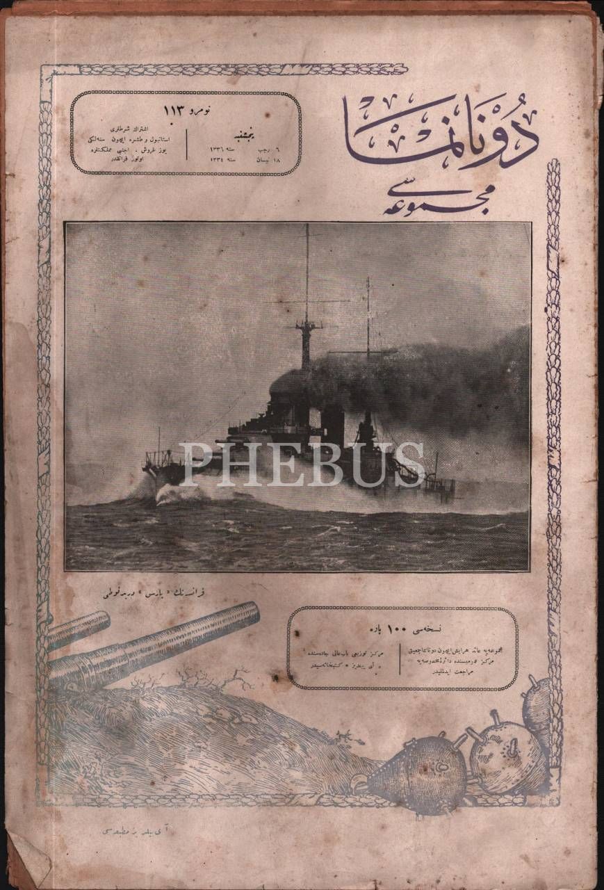Donanma Cemiyeti´nin yayın organı DONANMA´nın, kapağında savaş gemisi görseliyle 113. sayısı, 1336 tarihli, 25x38 cm