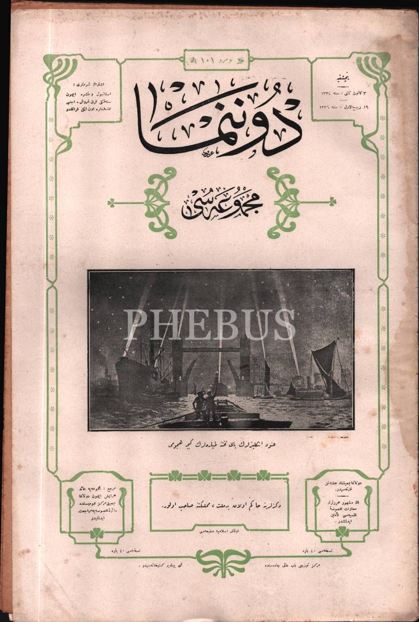 Donanma Cemiyeti´nin yayın organı DONANMA´nın "İnatçı İngilizlerin payitahtına tayyarelerin gece hücumu" başlıklı kapak görseliyle 101. sayısı, 1335 tarihli, 25x38 cm