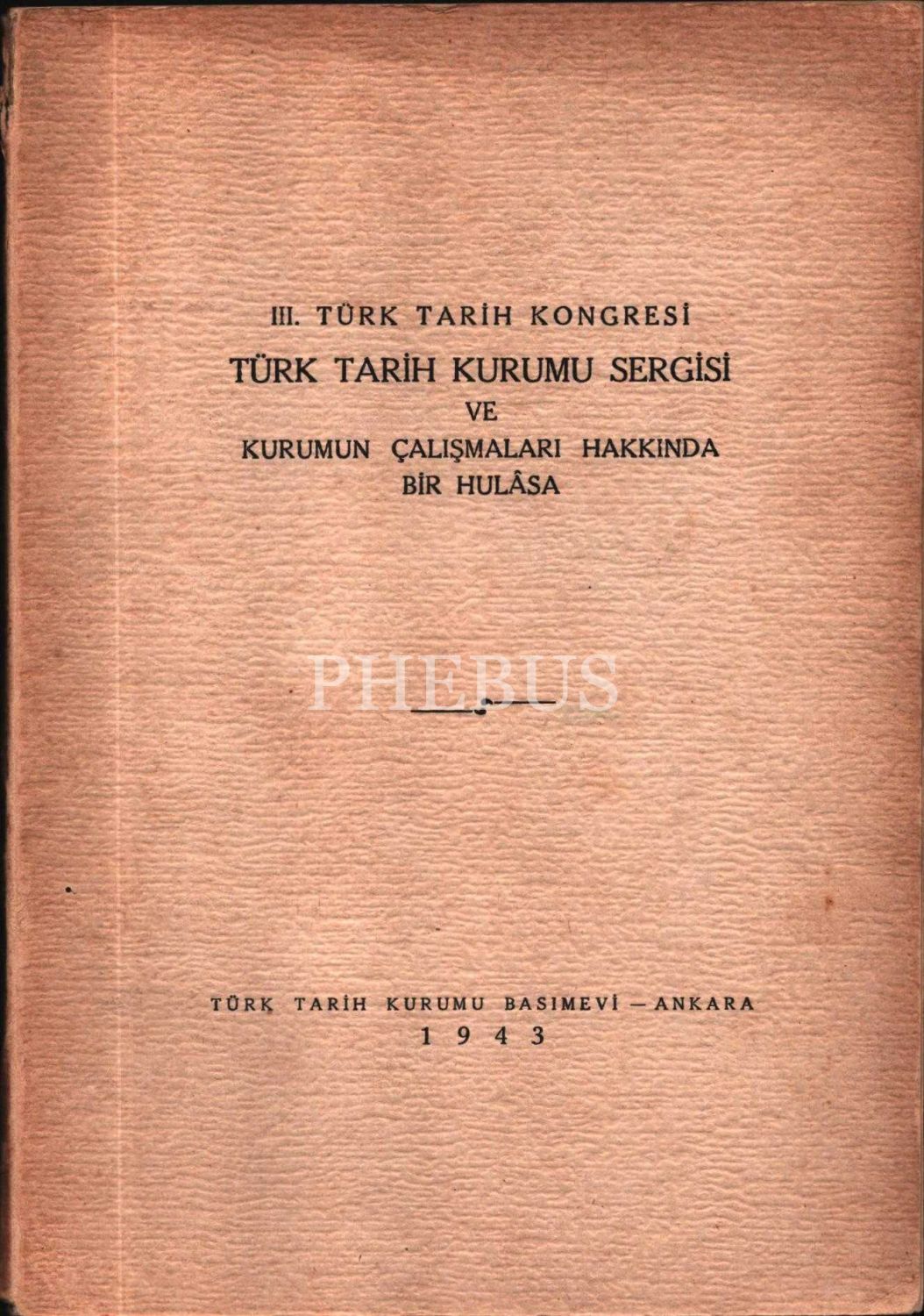 III. TÜRK TARİHİ KONGRESİ- TÜRK TARİH KURUMU SERGİSİ VE KURUMUN ÇALIŞMALARI HAKKINDA BİR HULÂSA, TTK Basımevi, Ankara 1943, 59 s., 17x24 cm