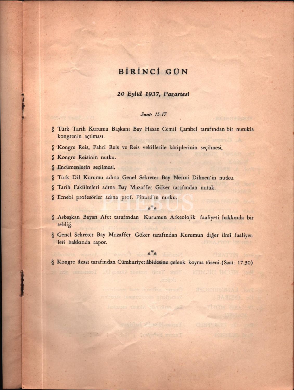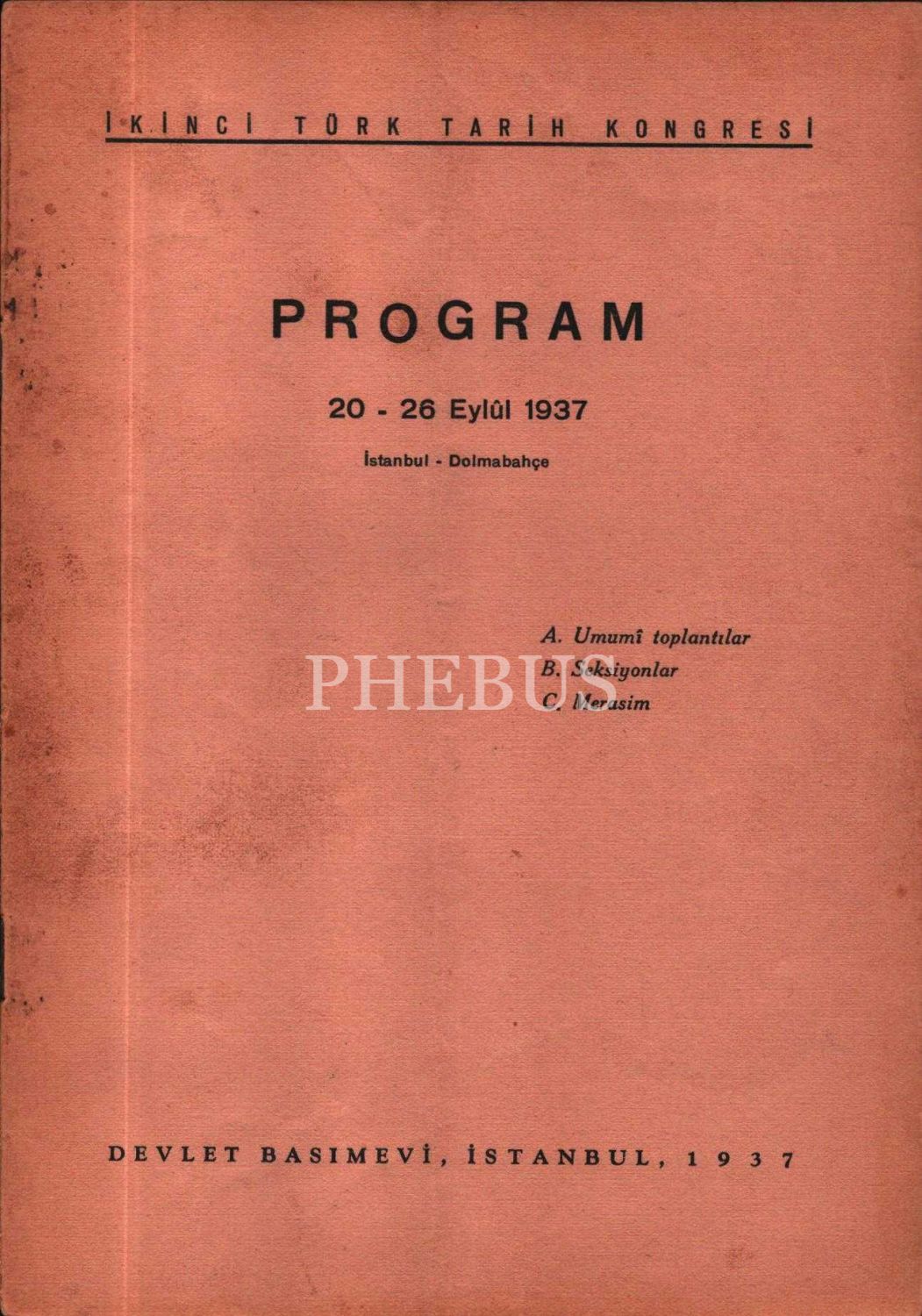 II. TÜRK TARİHİ KONGRESİ- PROGRAM (20-26 Eylül 1937), Devlet Basımevi, İstanbul 1937, 10 s., 17x24 cm