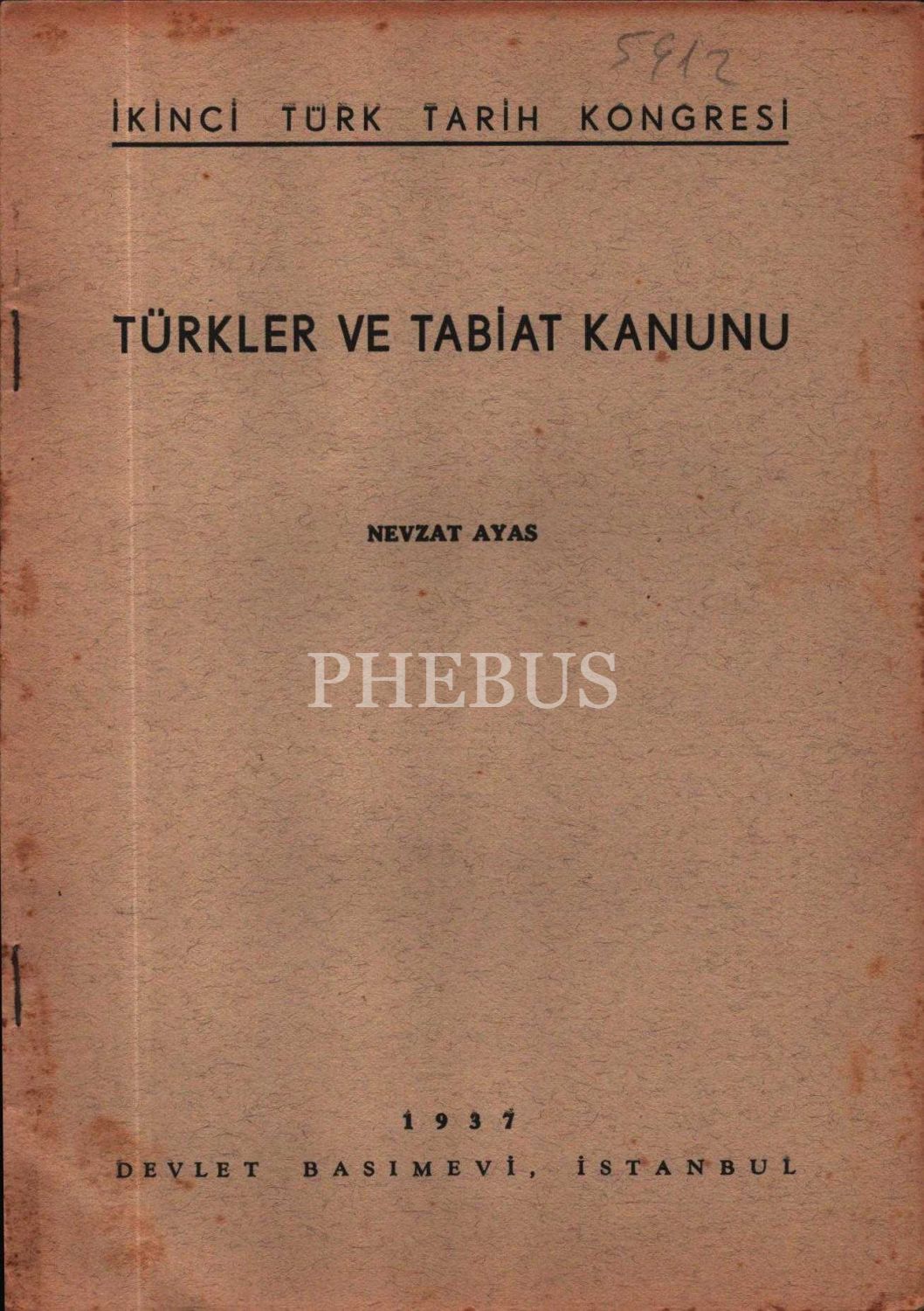 II. TÜRK TARİHİ KONGRESİ- TÜRKLER VE TABİAT KANUNU, Nevzat Ayas, Devlet Basımevi, İstanbul 1937, 19 s., 17x24 cm