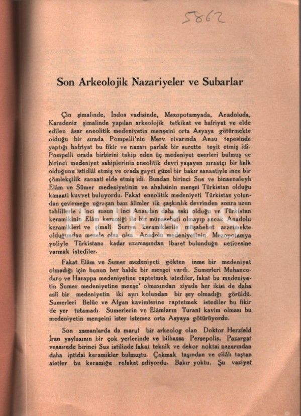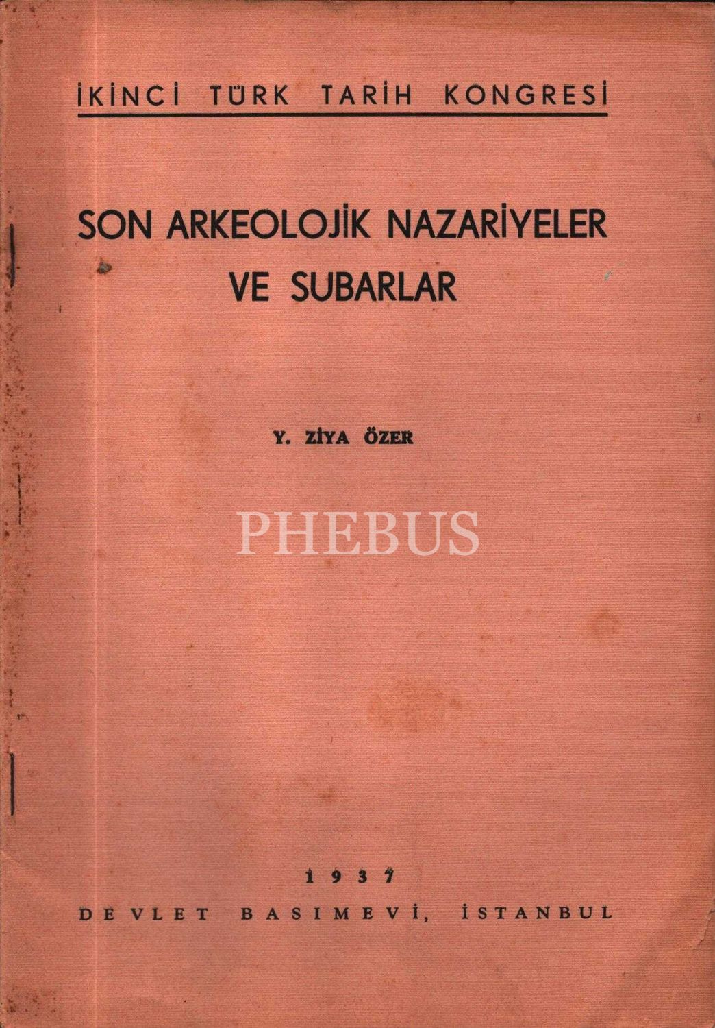 II. TÜRK TARİHİ KONGRESİ- SON ARKEOLOJİK NAZARİYELER VE SUBARLAR, Y. Ziya Özer, Devlet Basımevi, İstanbul 1937, 10 s., 17x24 cm