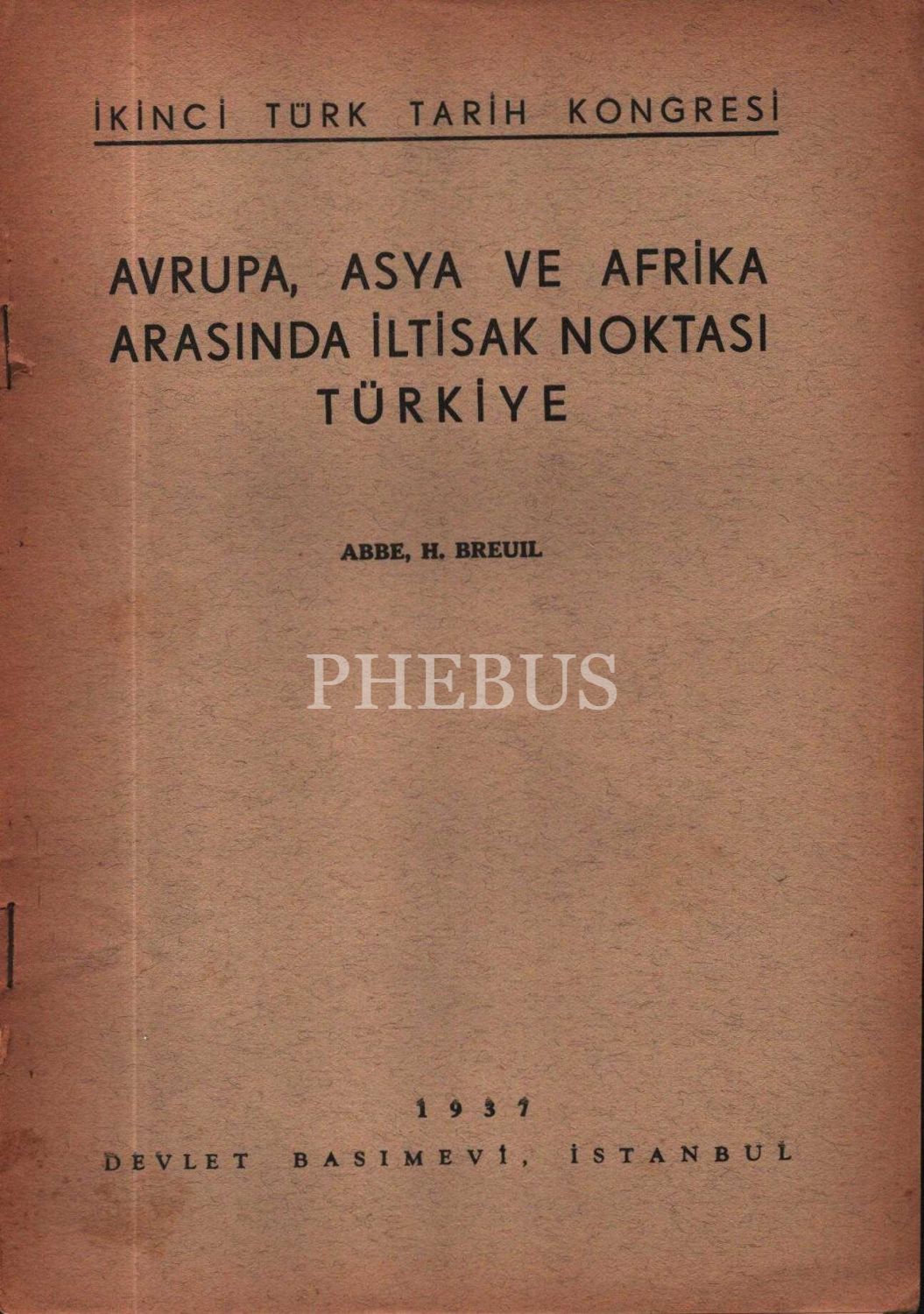 II. TÜRK TARİHİ KONGRESİ- AVRUPA, ASYA VE AFRİKA ARASINDA İLTİSAK NOKTASI TÜRKİYE, Abbe H. Breuil, Devlet Basımevi, İstanbul 1937, 3 s., 17x24 cm