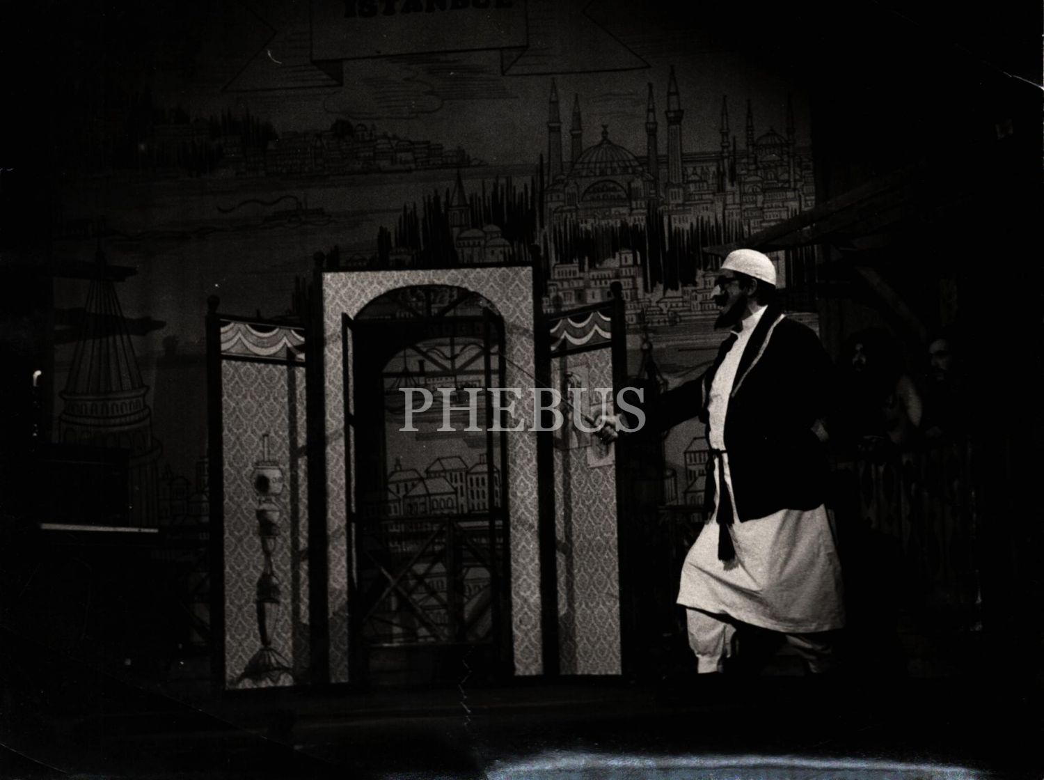 Tiyatro oyunundan bir sahne, 18x24 cm, üst köşeden kırık haliyle