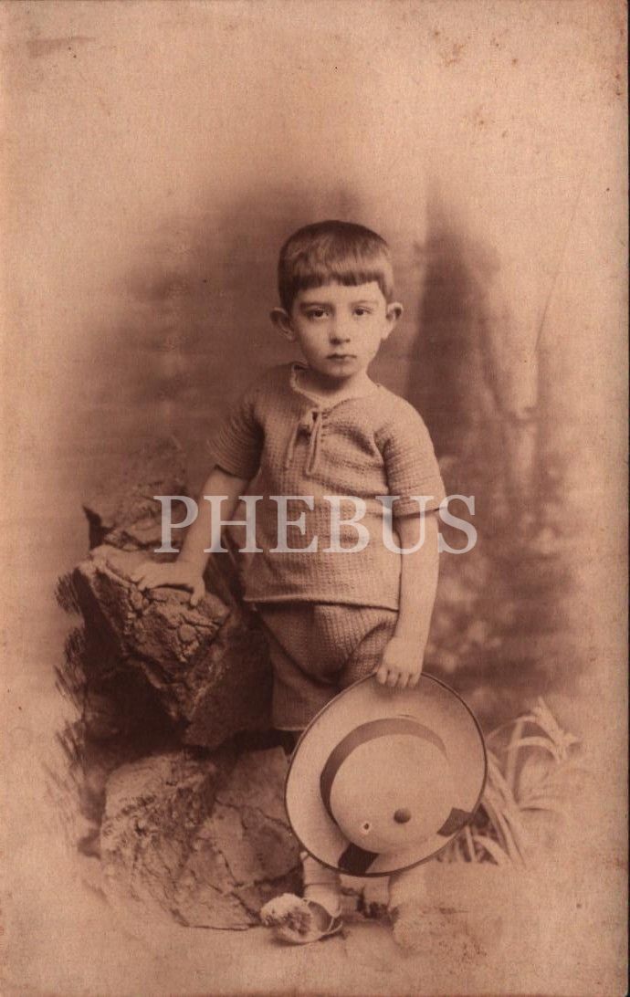 Elinde fötr şapkasıyla sevimli minik, 9x14 cm