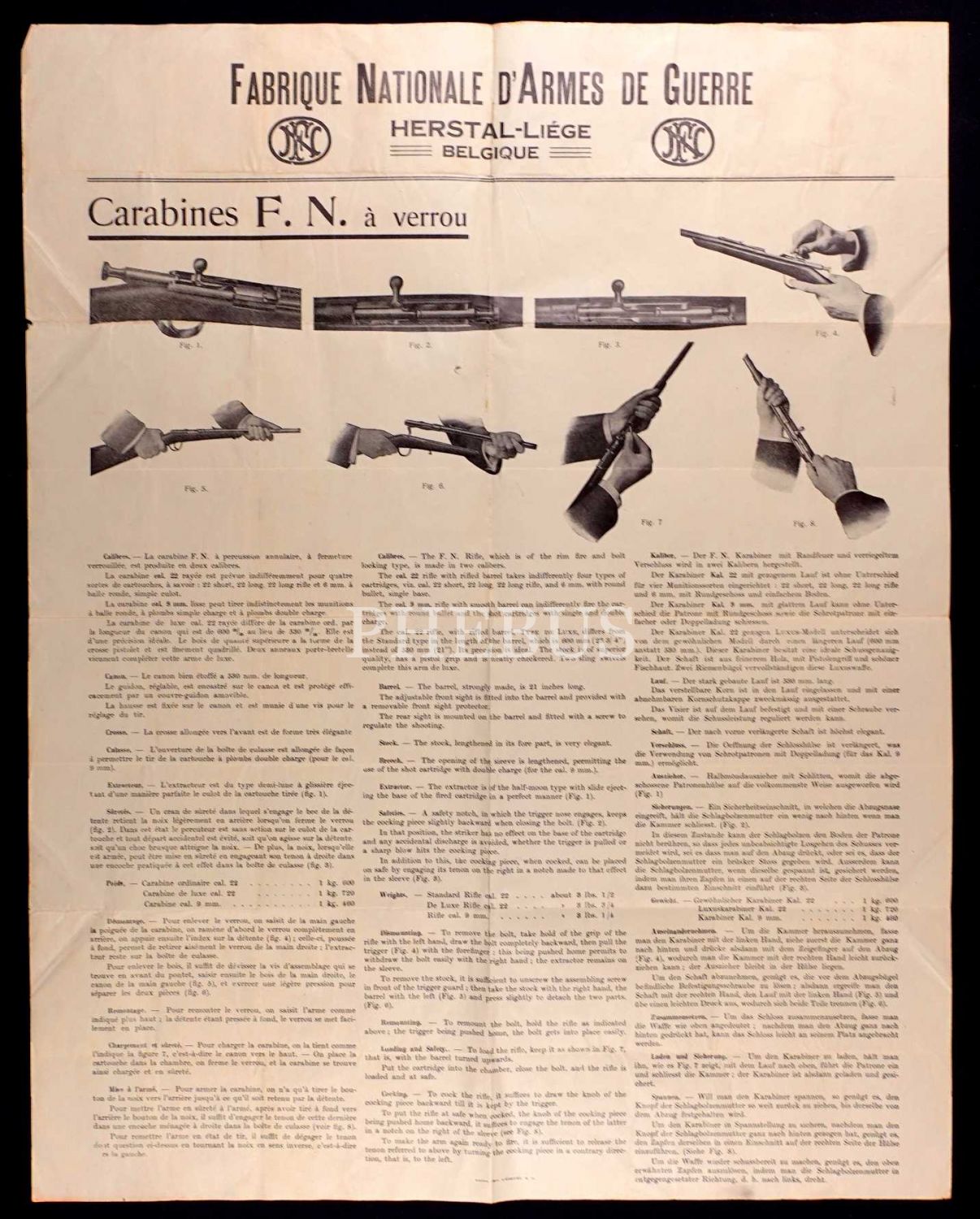 Ulusal Savaş Silahları Fabrikası´ndan Karabina tüfeği kullanım talimatlarını gösteren Almanca afiş, 44x55 cm