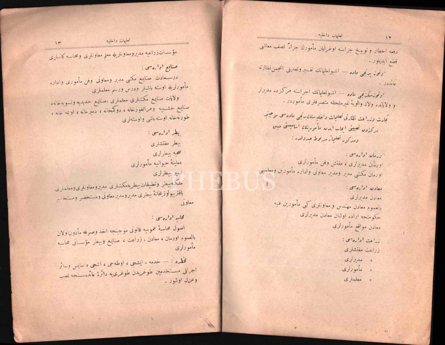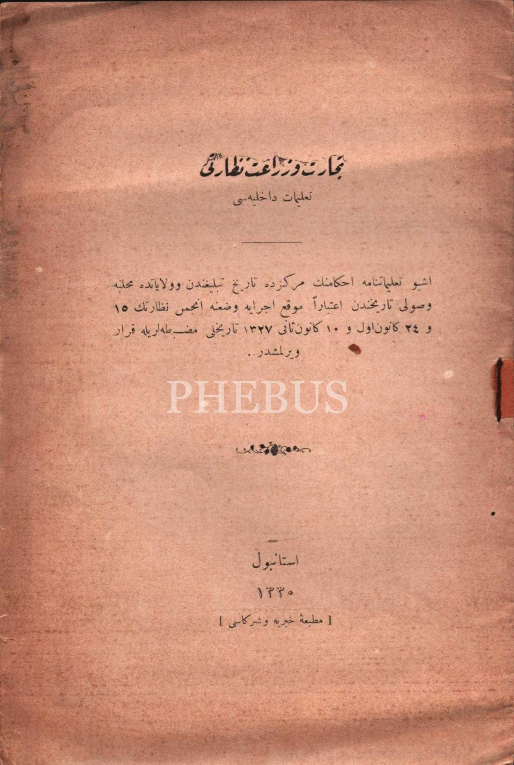 TİCARET VE ZİRAAT NEZARETİ TALİMAT-I DAHİLİYESİ, Matbaa-i Hayriye ve Şürekası, İstanbul 1330, 14 s., 15x23 cm