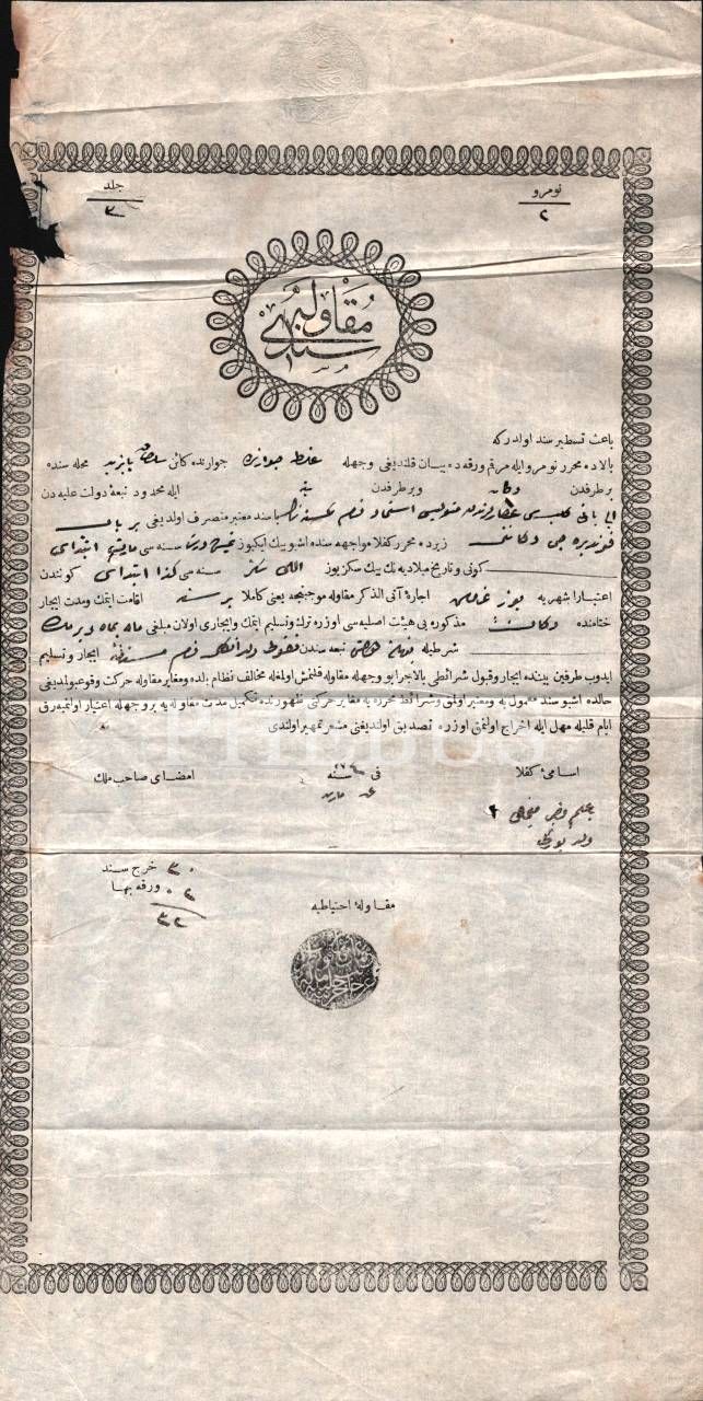 Aya Yani Kilisesi akarlarından bir kunduracı dükkânı için 1274 tarihli kira sözleşmesi, Galata/İstanbul, 21x42 cm