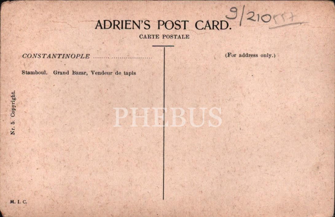 Meslek kartpostalı: Kapalıçarşı´da bir halı satıcısı, Constantinople, ed. M.I.C.