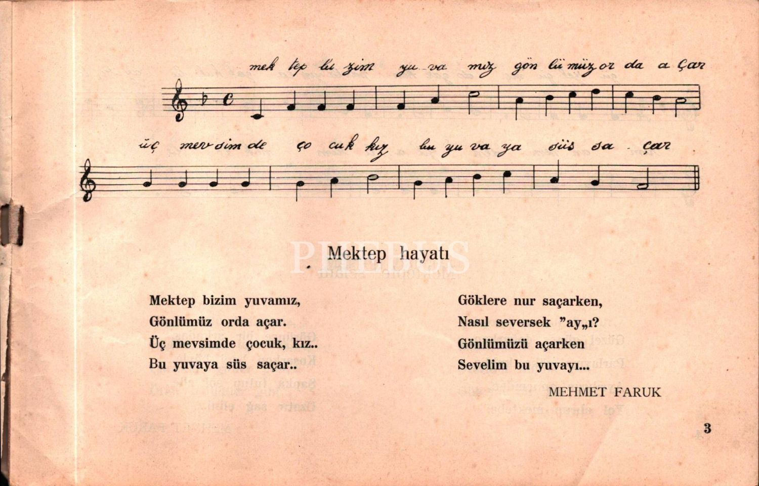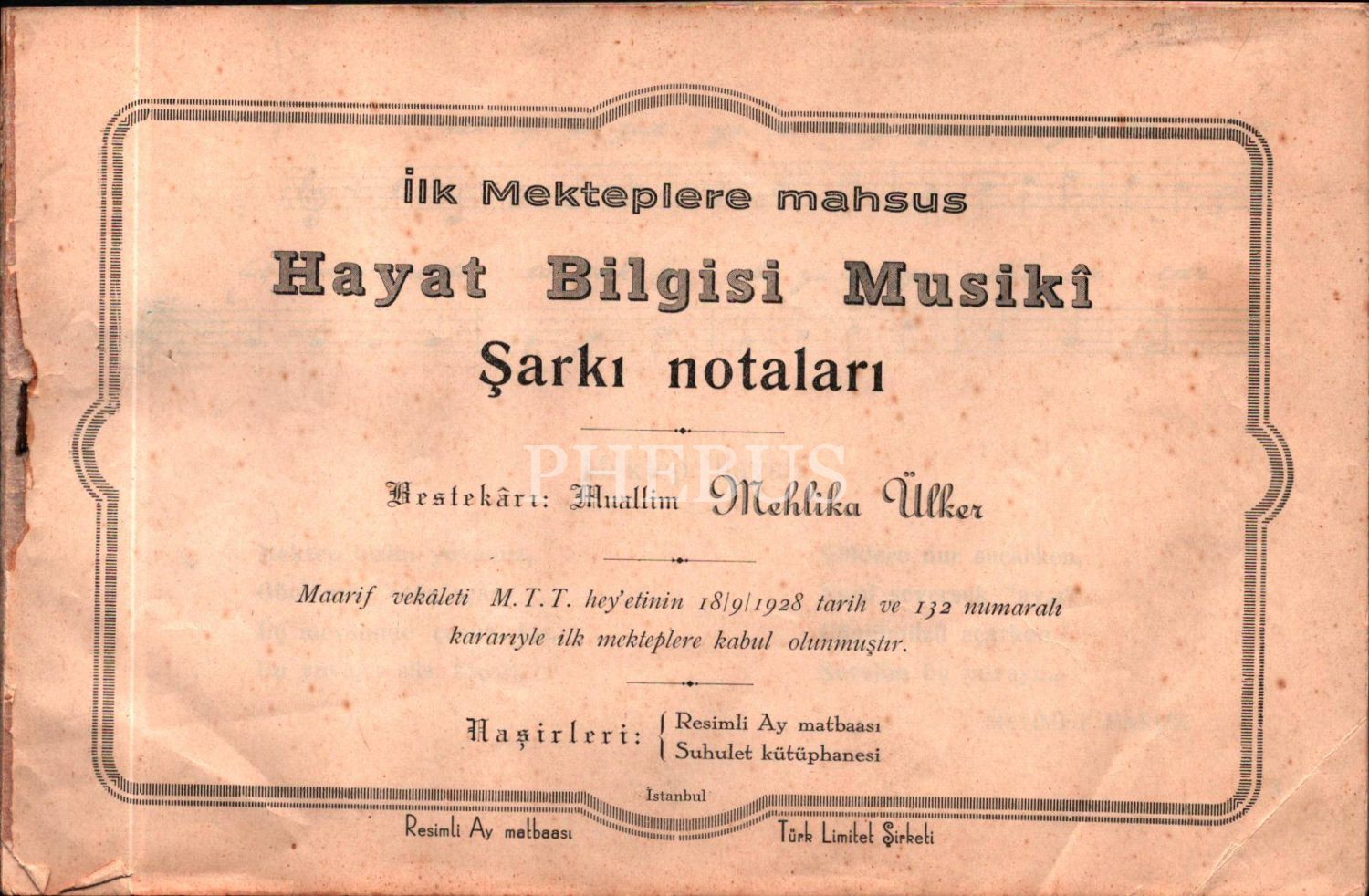İLK MEKTEPLERE MAHSUS HAYAT BİLGİSİ MUSİKÎ ŞARKI NOTALARI, Mehlika Ülker, Resimli Ay Matbaası, İstanbul, 44 s., 16x24 cm