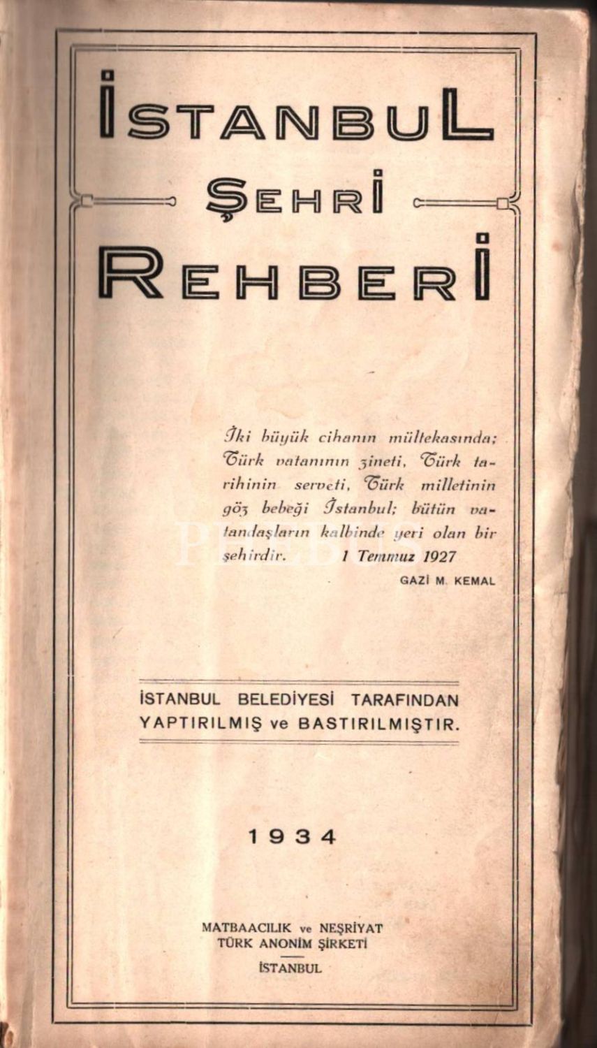 Şehir tarihi: İSTANBUL ŞEHRİ REHBERİ, yay. İstanbul Belediyesi, 1934, 11x20 cm