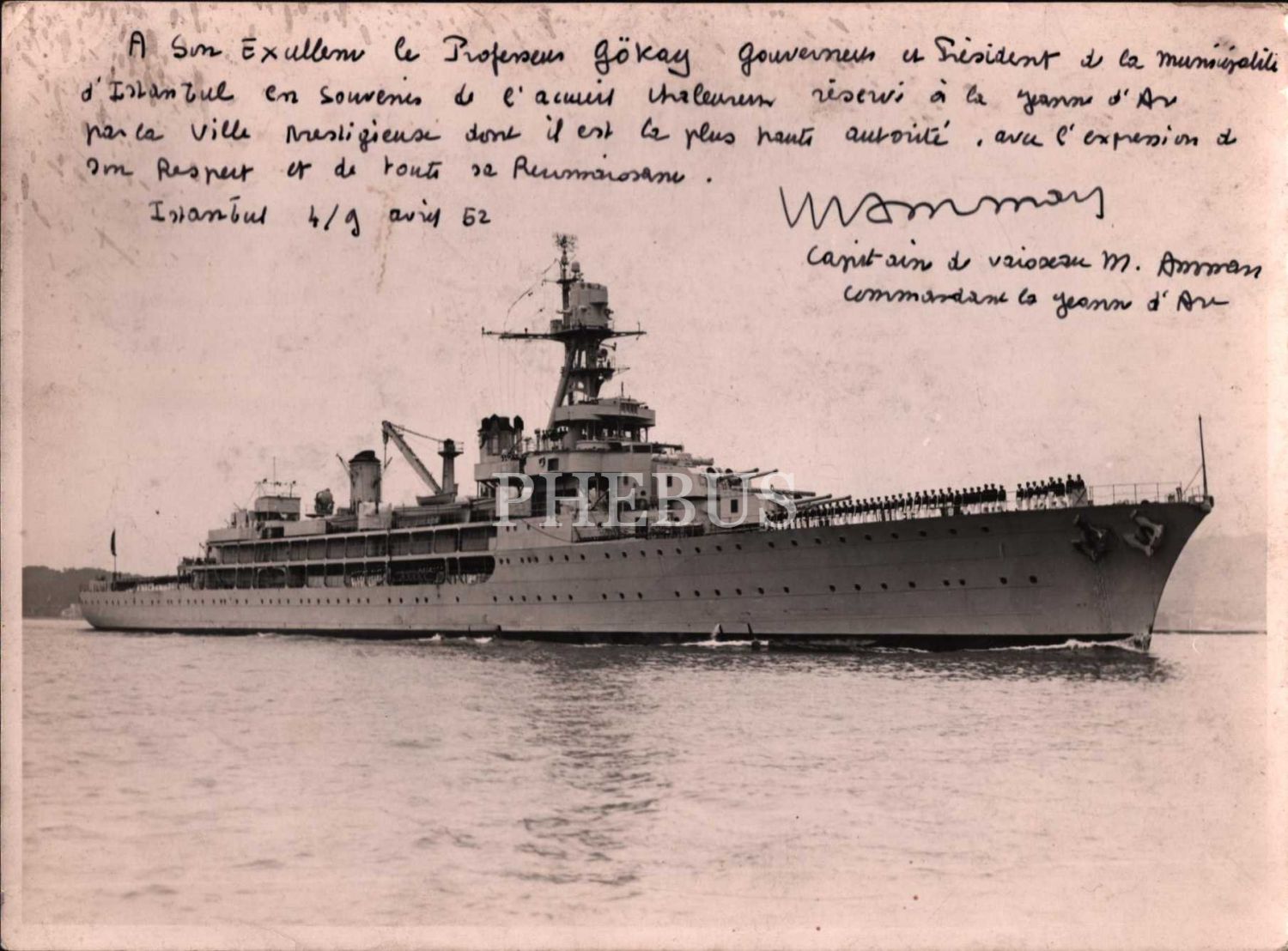 Fransız askerî okul gemisi, Photographiques Marius Bar damgalı, imzalı ve ithaflı, 17x23 cm