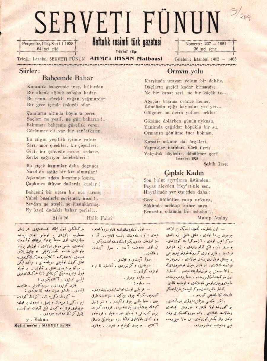 SERVET-İ FÜNUN´un Cumhuriyet Bayramı kapak görselli 207. sayısı, 1 Teşrinisani 1928, 24x33 cm