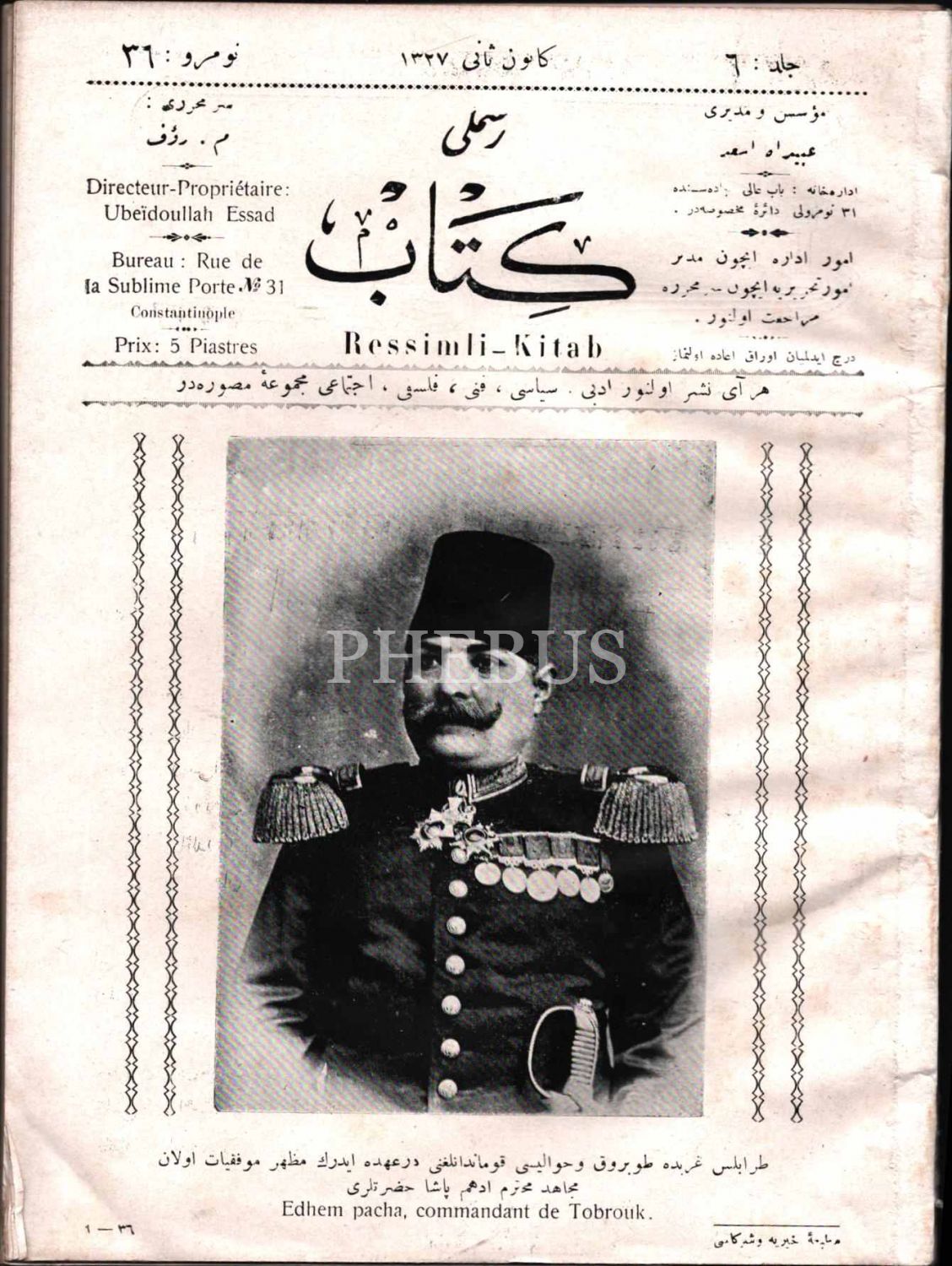 RESİMLİ KİTAB´ın Trablusgarb Tobruk ve Havalisi Kumandanı Ethem Paşa kapaklı 36. sayısı, 1327 tarihli, 17x22 cm