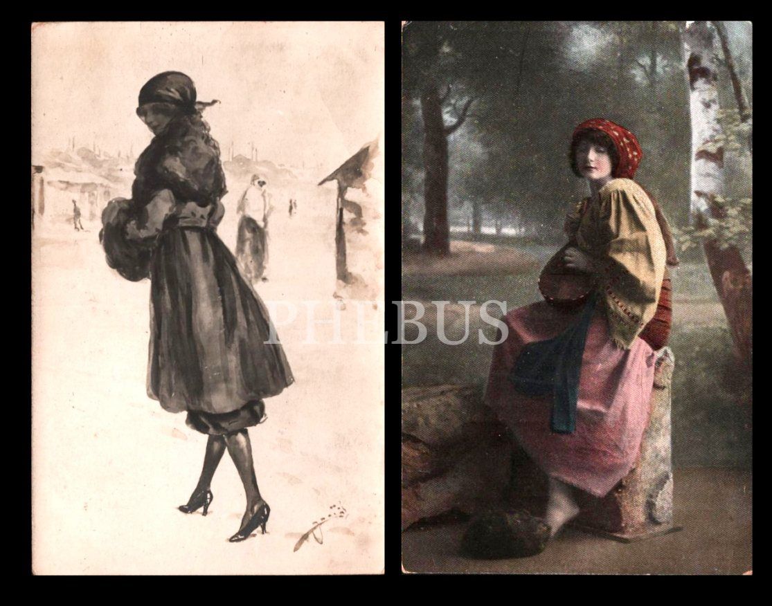 2 adet hanımefendi kartpostalı