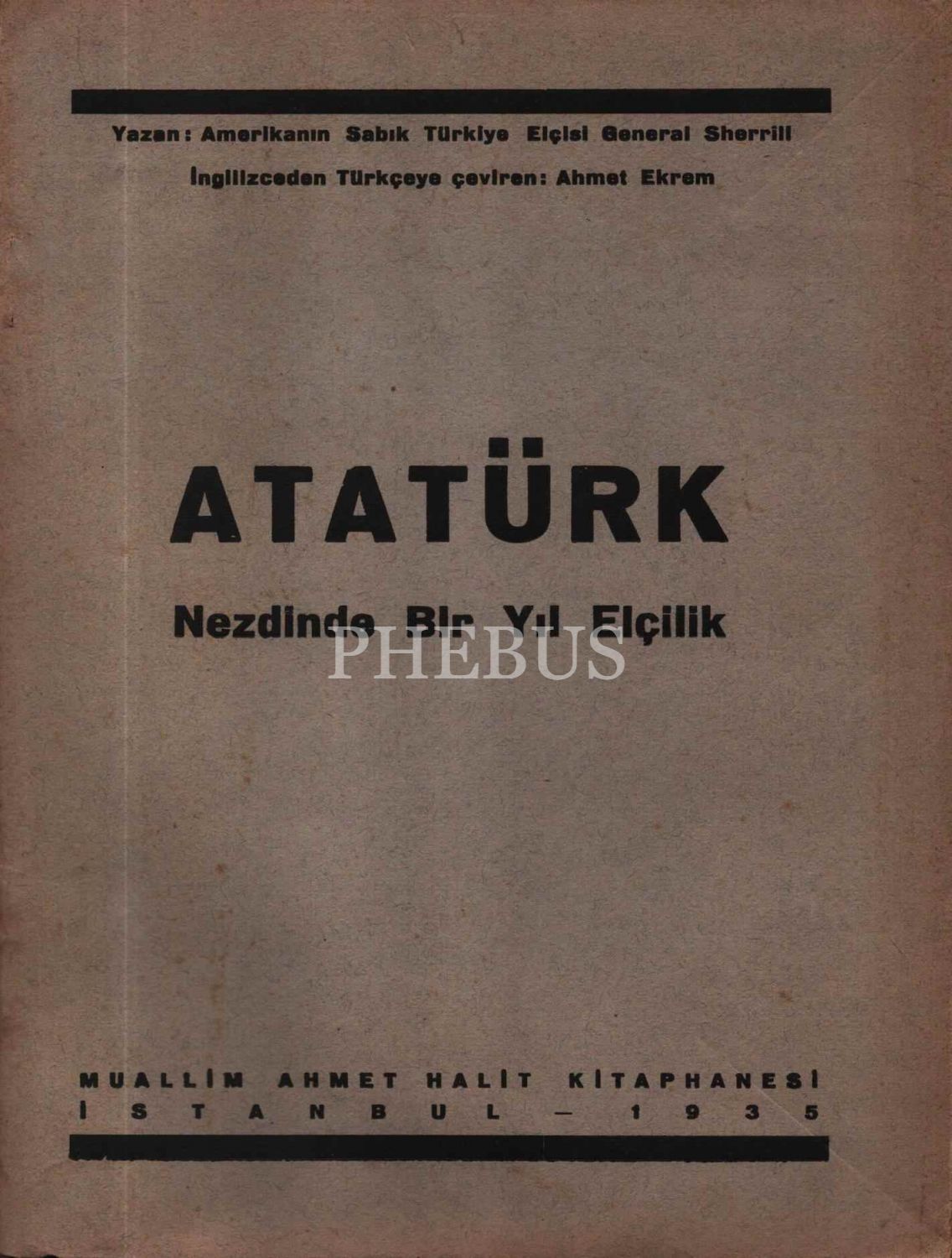 ATATÜRK NEZDİNDE BİR YIL ELÇİLİK, General Sherril, çev. Ahmet Ekrem, Muallim Ahmet Halit Kitaphanesi, 1935, 96 sayfa