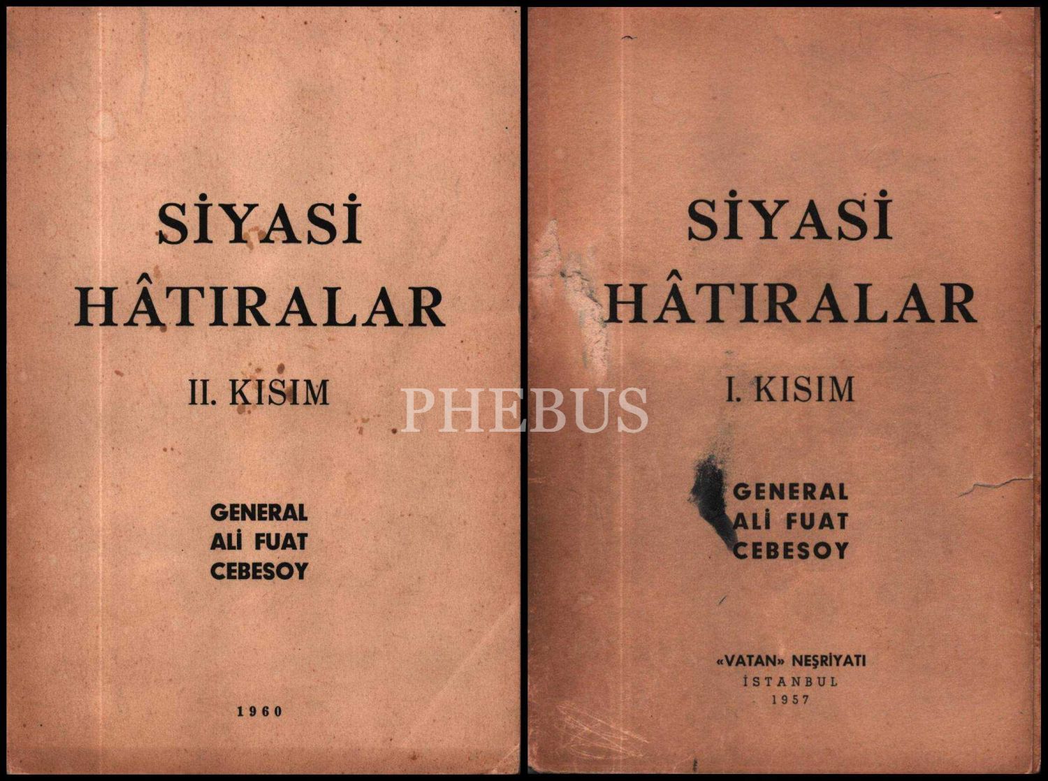 SİYASİ HÂTIRALAR (I ve II. Kısım), General Ali Fuat Cebesoy, Vatan Neşriyatı, 1957-60, 344 sayfa