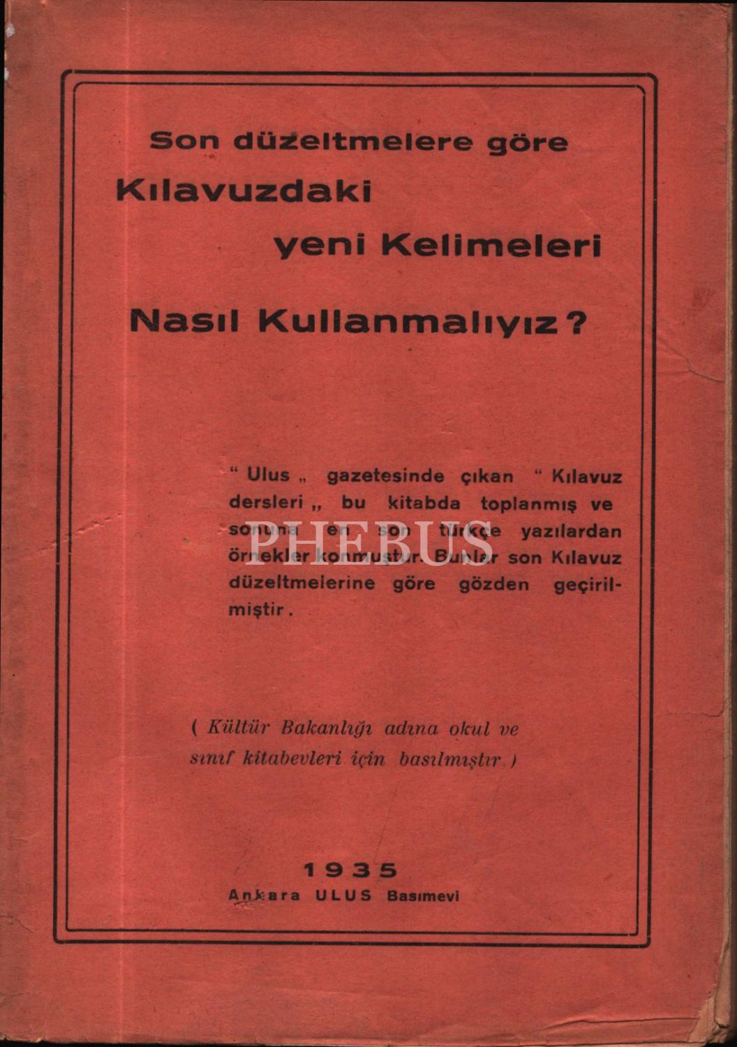 SON DÜZELTMELERE GÖRE KILAVUZDAKİ YENİ KELİMELERİ NASIL KULLANMALIYIZ?, Ulus Basımevi, 1935, 178 sayfa
