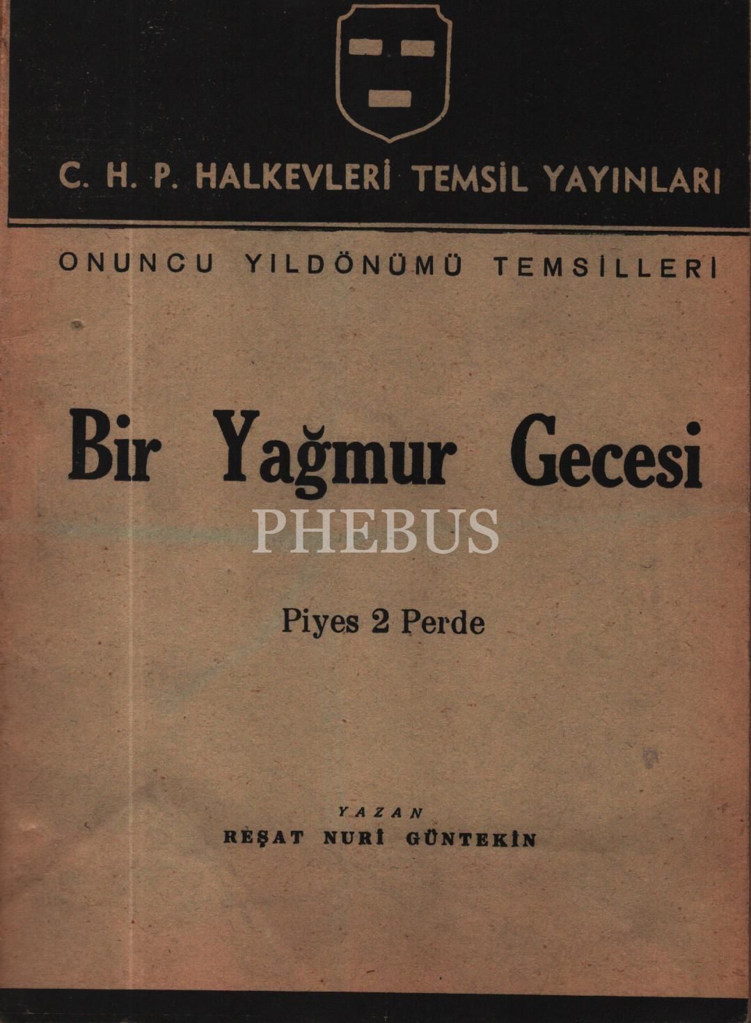 BİR YAĞMUR GECESİ, (Piyes), Reşat Nuri Güntekin, C. H. P. Halkevleri Temsil Yayınları, 1941, 105 sayfa