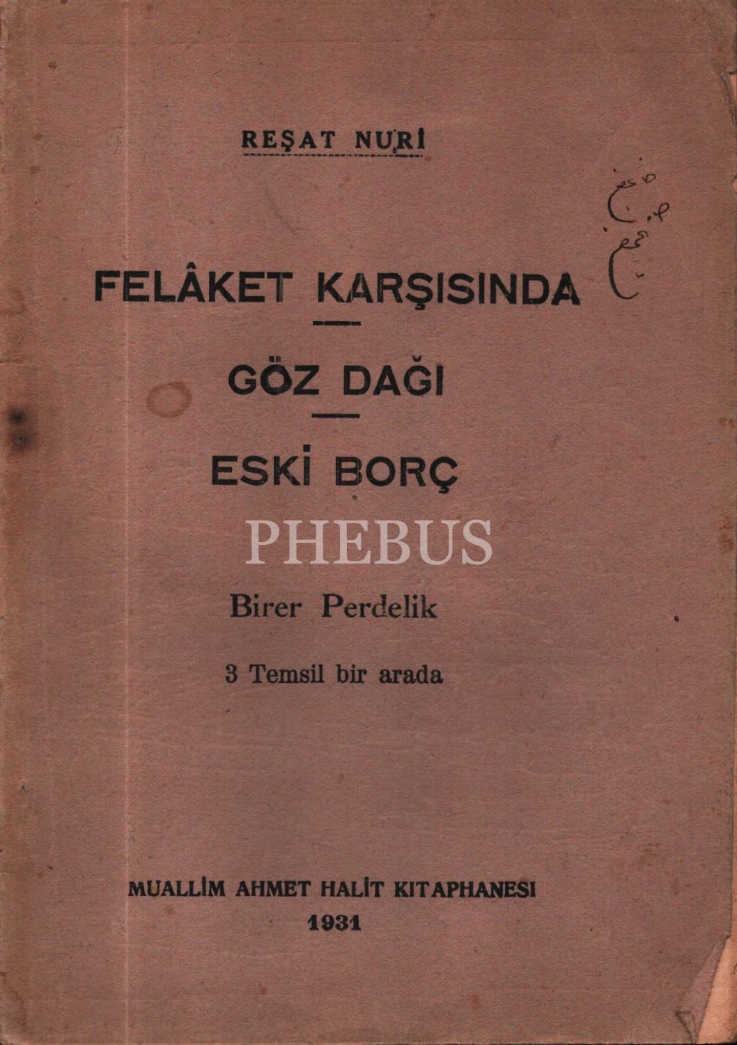 FELÂKET KARŞISINDA - GÖZ DAĞI - ESKİ BORÇ (Birer Perdelik 3 Temsil), Reşat Nuri, Muallim Ahmet Halit Kitaphanesi, 1931, 45 sayfa