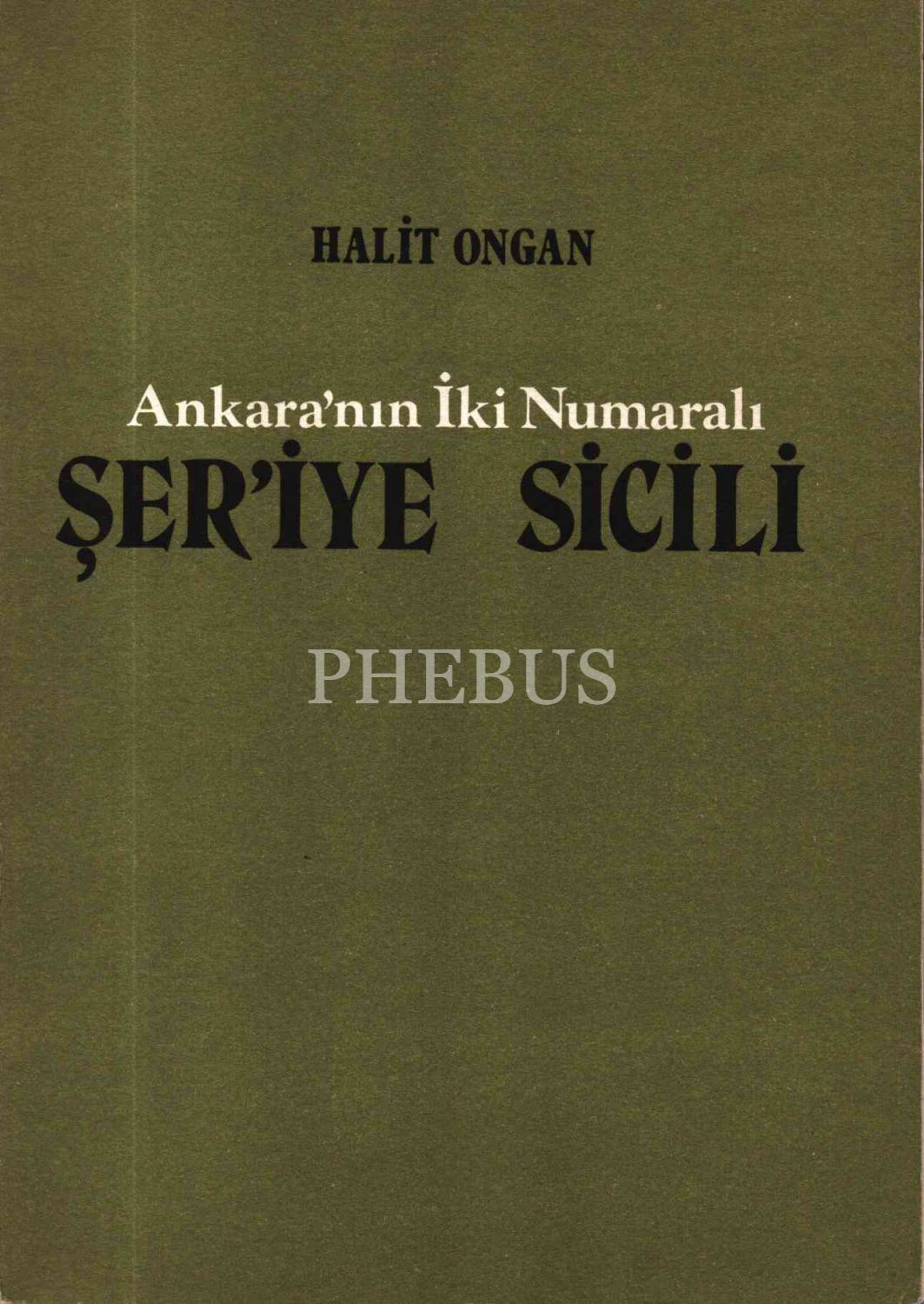 ANKARA´NIN İKİ NUMARALI ŞER´İYE SİCİLİ, Halit Ongan, Türk Tarih Kurumu Yayınları, 1974, 222 sayfa