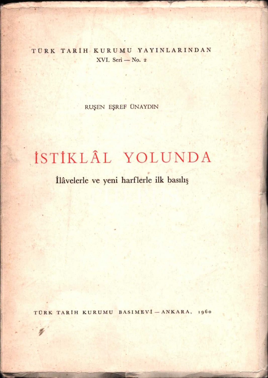 İSTİKLÂL YOLUNDA (İlavelerle ve Yeni Harflerle İlk Basılış), Ruşen Eşref Günaydın, Türk Tarih Kurumu Yayınları, 1960, 126 sayfa