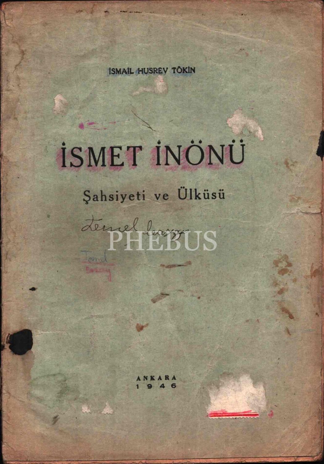 İSMET İNÖNÜ (Şahsiyeti ve Ülküsü), İsmail Hüsrev Tökin, Ülkü Basımevi, 1946, Ankara, 72 sayfa
