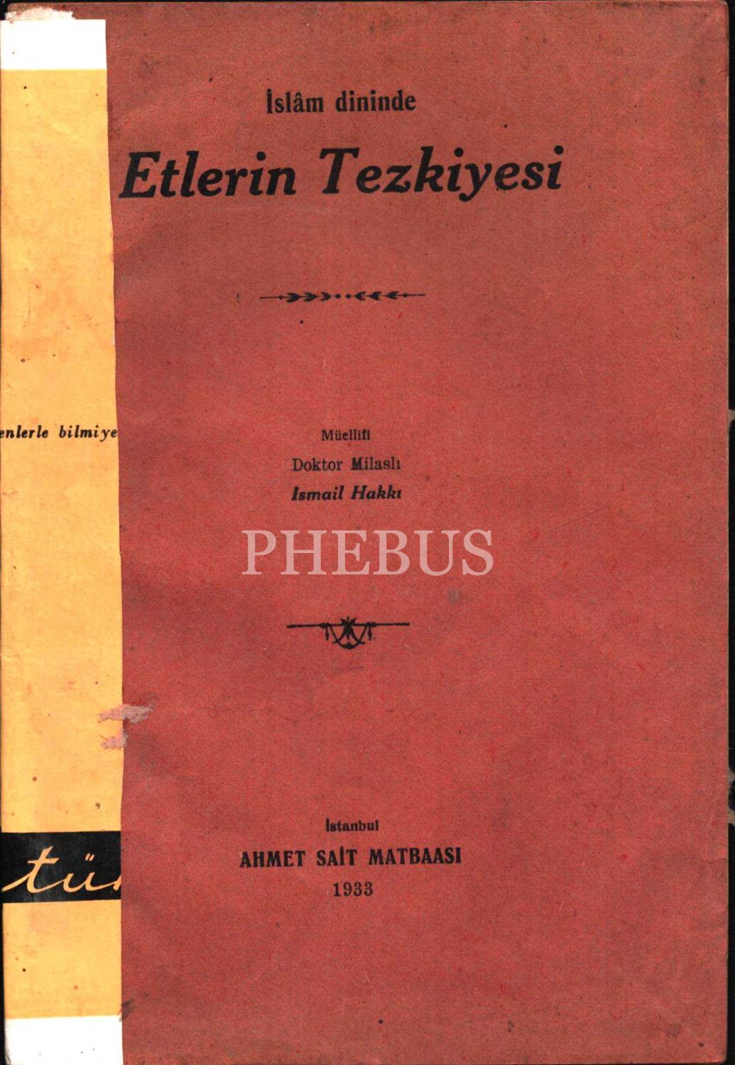 İSLÂM DİNİNDE ETLERİN TEZKİYESİ, İsmail Hakkı, Ahmet Said Matbaası, 1933, 31 sayfa