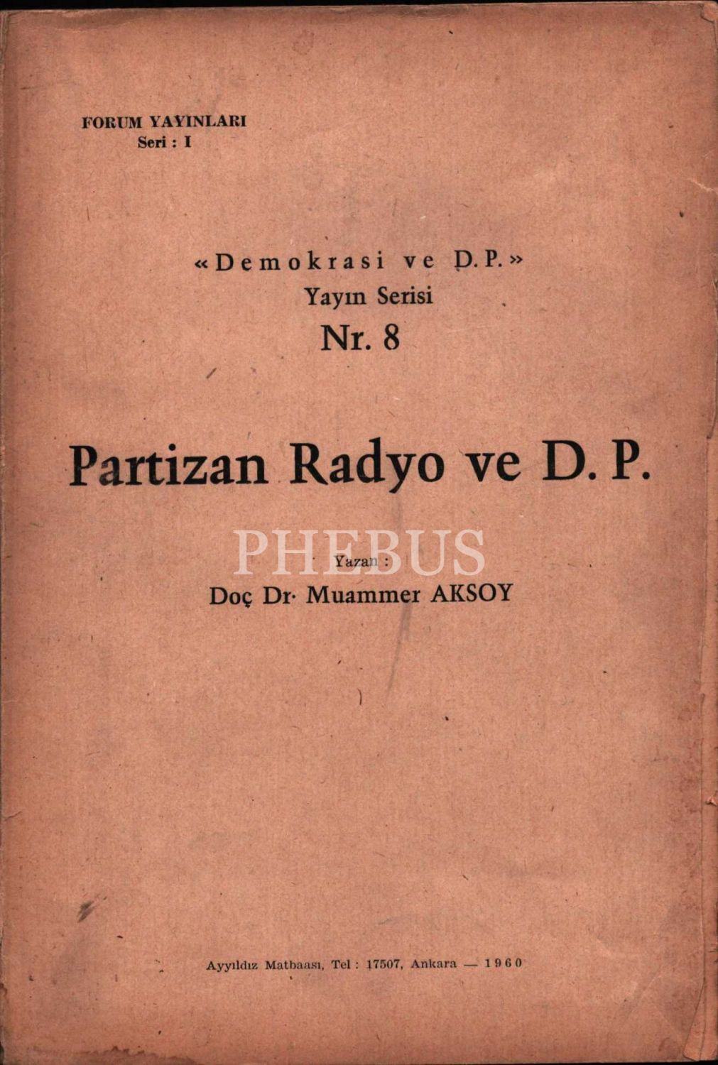 PARTİZAN RADYO VE D. P., Doç Dr. Muammer Aksoy, Forum Yayınları, 1960, Ankara, 200 sayfa