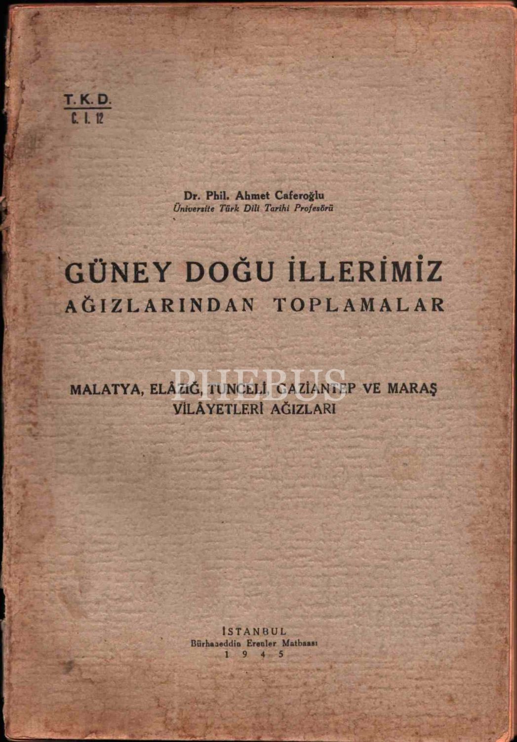 GÜNEY DOĞU İLLERİMİZ AĞIZLARINDAN TOPLAMALAR, Dr. Ahmet Caferoğlu, Bürhaneddin Erenler Matbaası, İstanbul, 1945, 319 sayfa