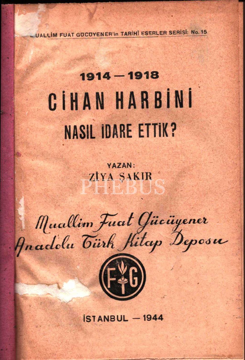 1914-1918 CİHAN HARBİNİ NASIL İDARE ETTİK?, Ziya Şakir, Anadolu Türk Kitap Deposu, İstanbul, 1944, 327 sayfa