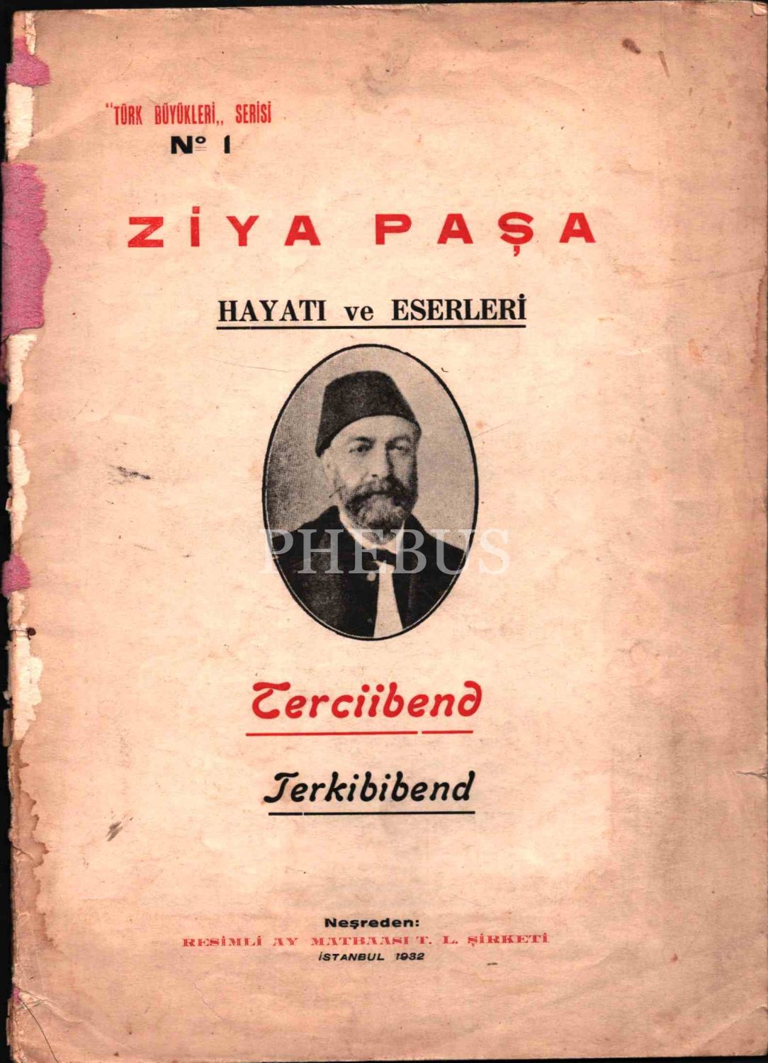 ZİYA PAŞA (Hayatı ve Eserleri- Terciibend - Terkibibend), Resimli Ay Matbaası, İstanbul, 1932, 32 sayfa