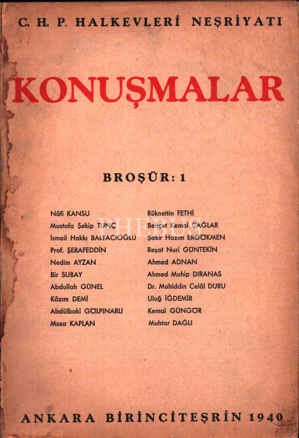 KONUŞMALAR- Broşür: 1, C. H. P. Halk Evleri Neşriyatı, Ankara, 1940, 182 sayfa