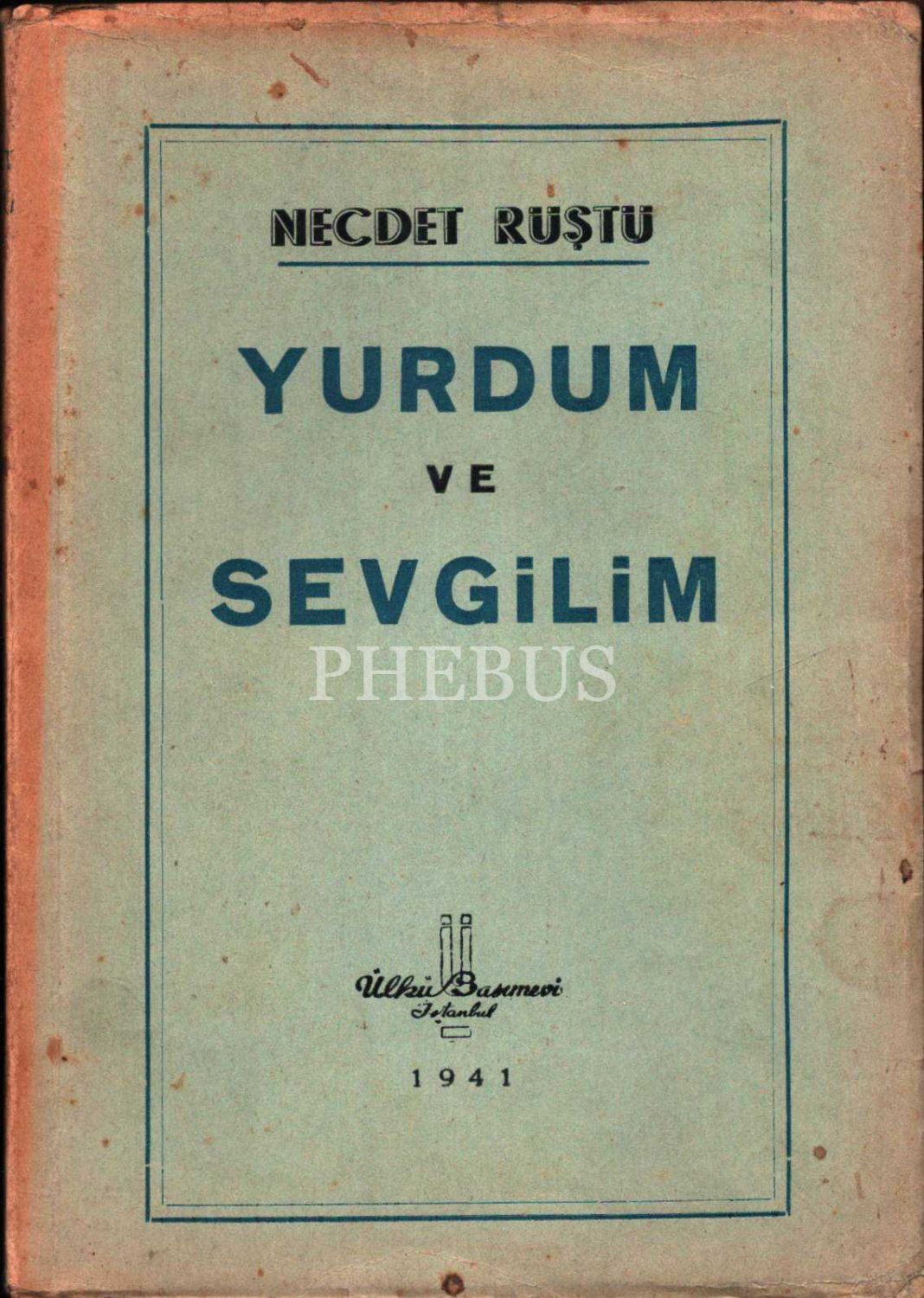YURDUM VE SEVGİLİM, Necdet Rüştü, Ülkü Basımevi, 1941, 112 sayfa