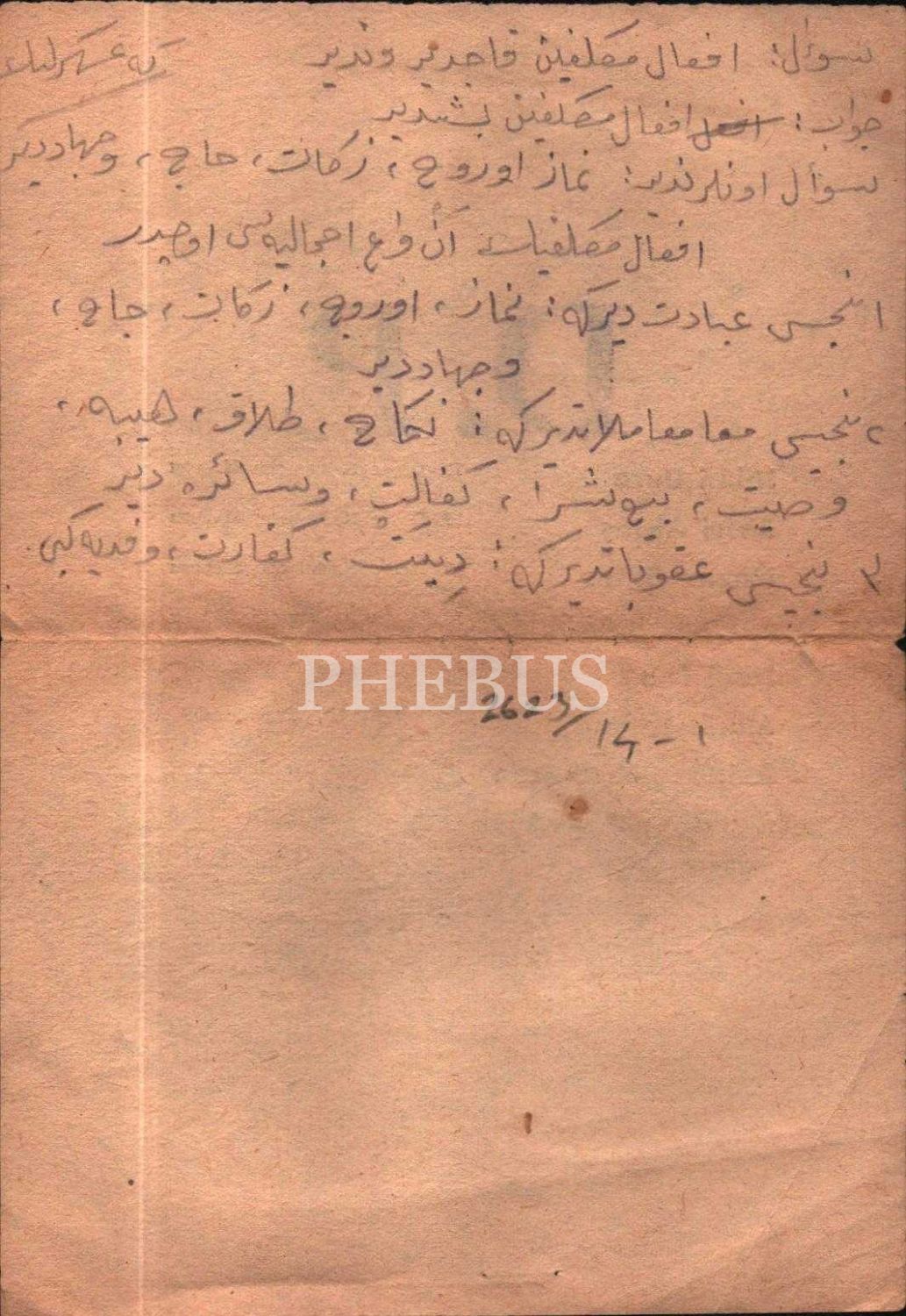 Arka yüzlerine eski harflerle çeşitli dinî soru ve cevaplar yazılmıştır.