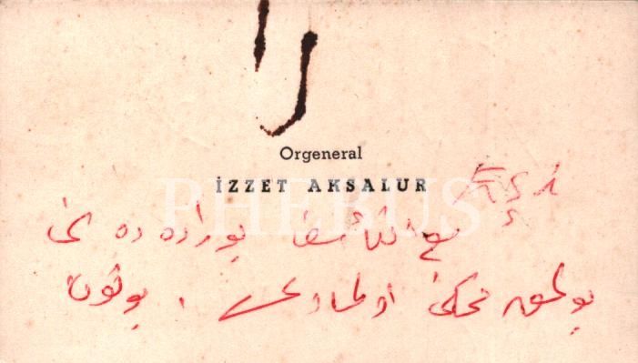 Orgeneral İzzet Aksalur´un, Osmanlıca yazılı kartviziti, 9x5 cm