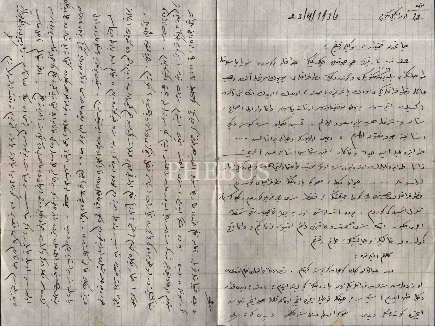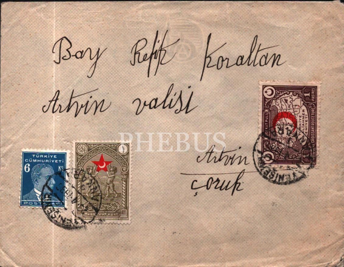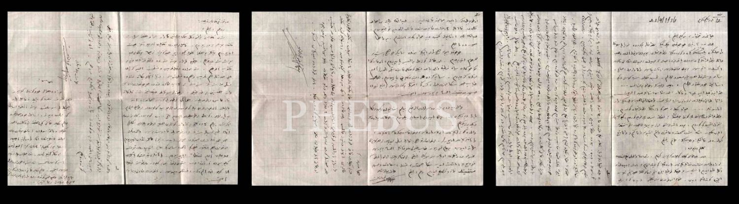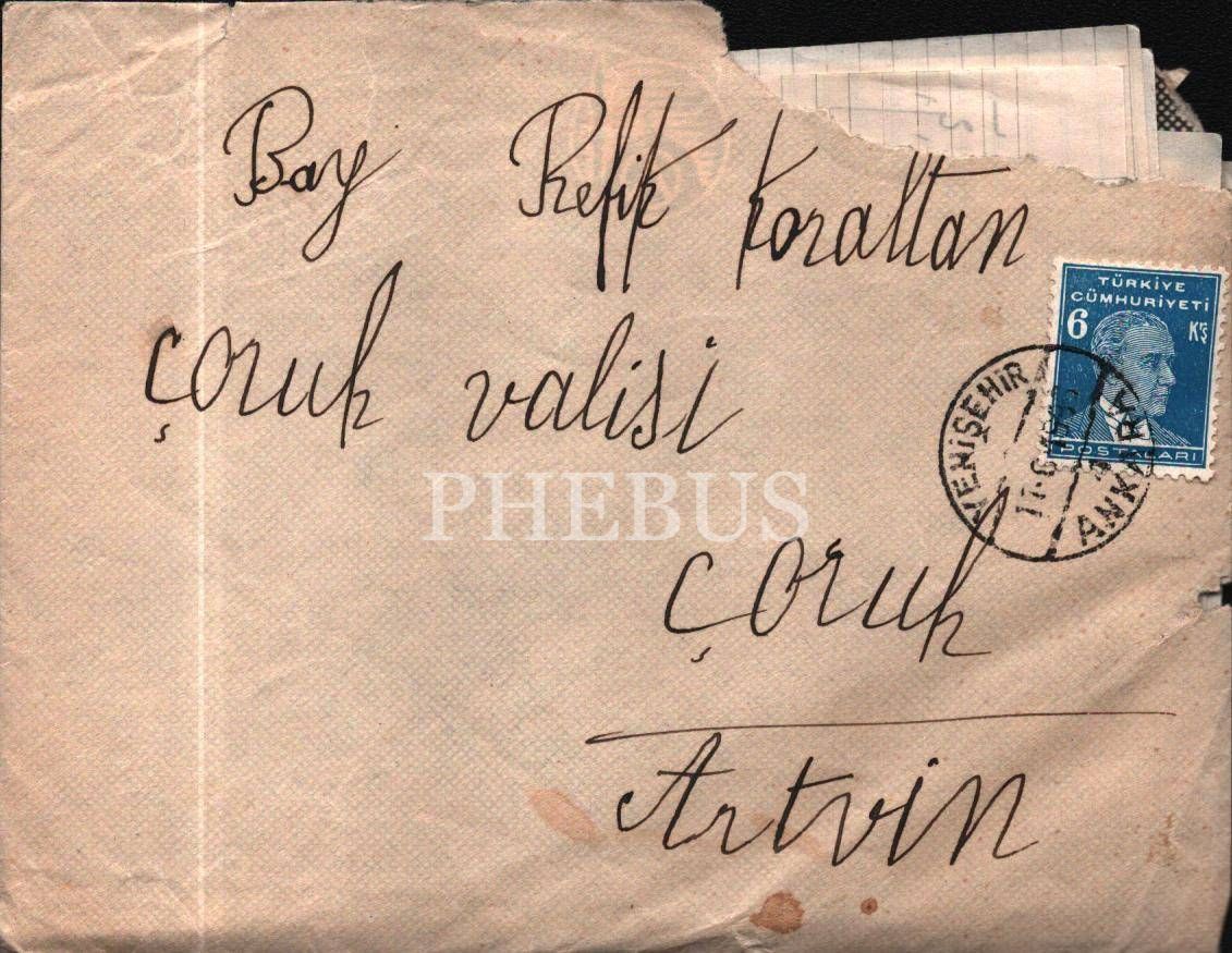 Artvin Valisi Refik Koraltan´a, eşi Mukbile Koraltan´ın gönderdiği beş sayfalık Osmanlıca mektuplar ve zarfları, 26x20 cm