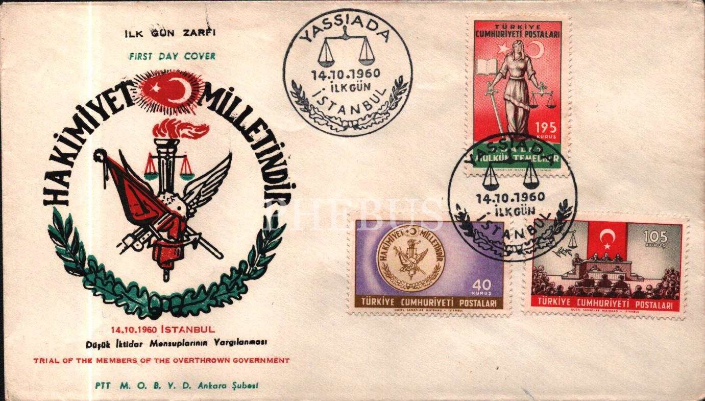 "14.10.1960 İstanbul Düşük İktidar Mensuplarının Yargılanması" İlk Gün Zarfı, 17x10 cm