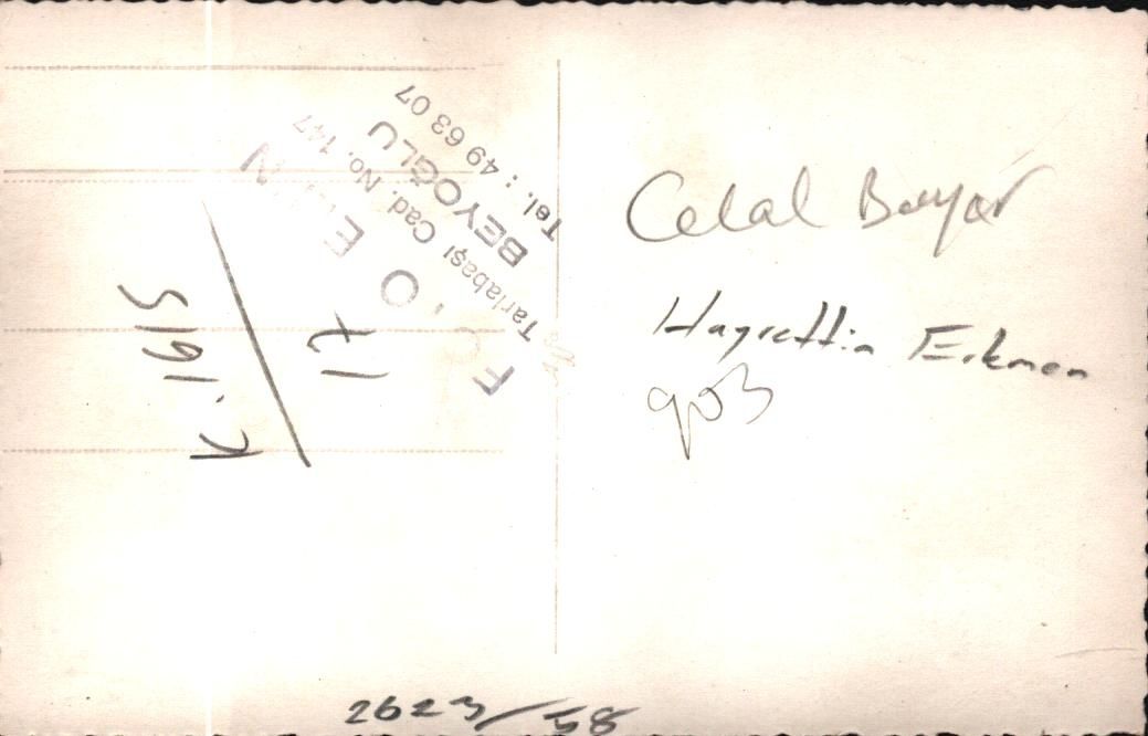 Celal Bayar ve Hayrettin Erkmen bir sünnet düğününde, "Foto Emin - Tarlabaşı Cad. Beyoğlu" damgalı, 14x9 cm