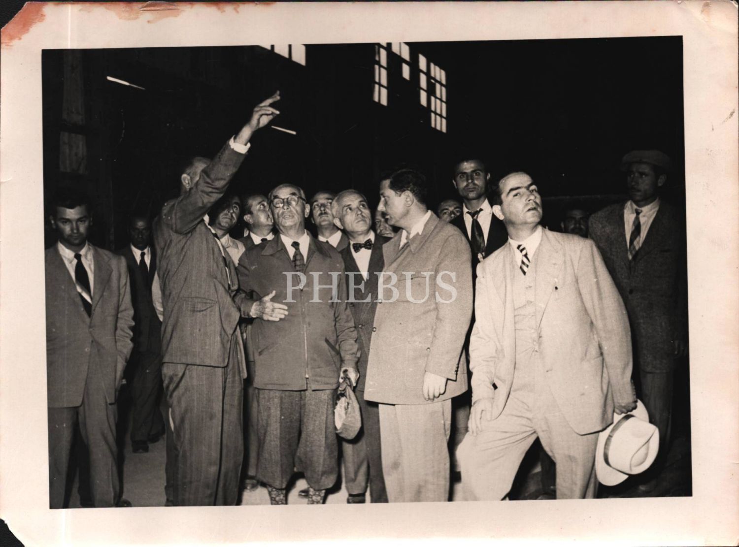 Celal Bayar bir fabrika ziyaretinde yetkiliden bilgi alırken, 24x18 cm
