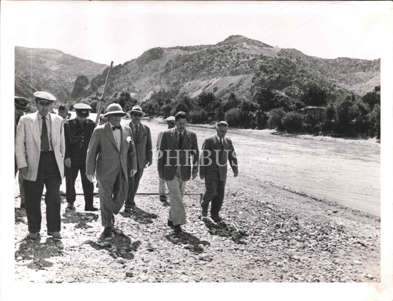 Celal Bayar bir şehir ziyaretinde beraberindekilerle yürürken, 24x18 cm