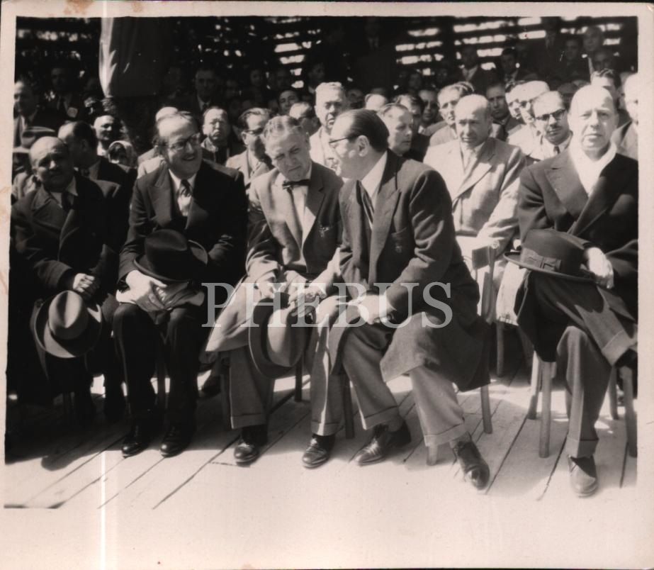 Adnan Menderes, Fahrettin Kerim Gökay´ın da bulunduğu protokolde Fatin Rüştü Zorlu ile sohbet ederken, "ARA GÜLER - Hayat Mecmuası Foto Muhabiri" damgalı, 12x10 cm