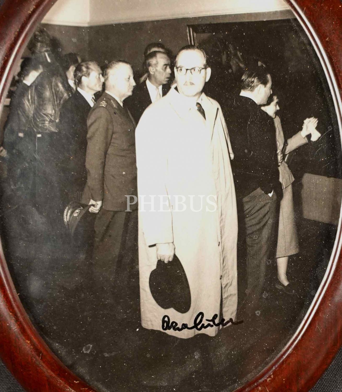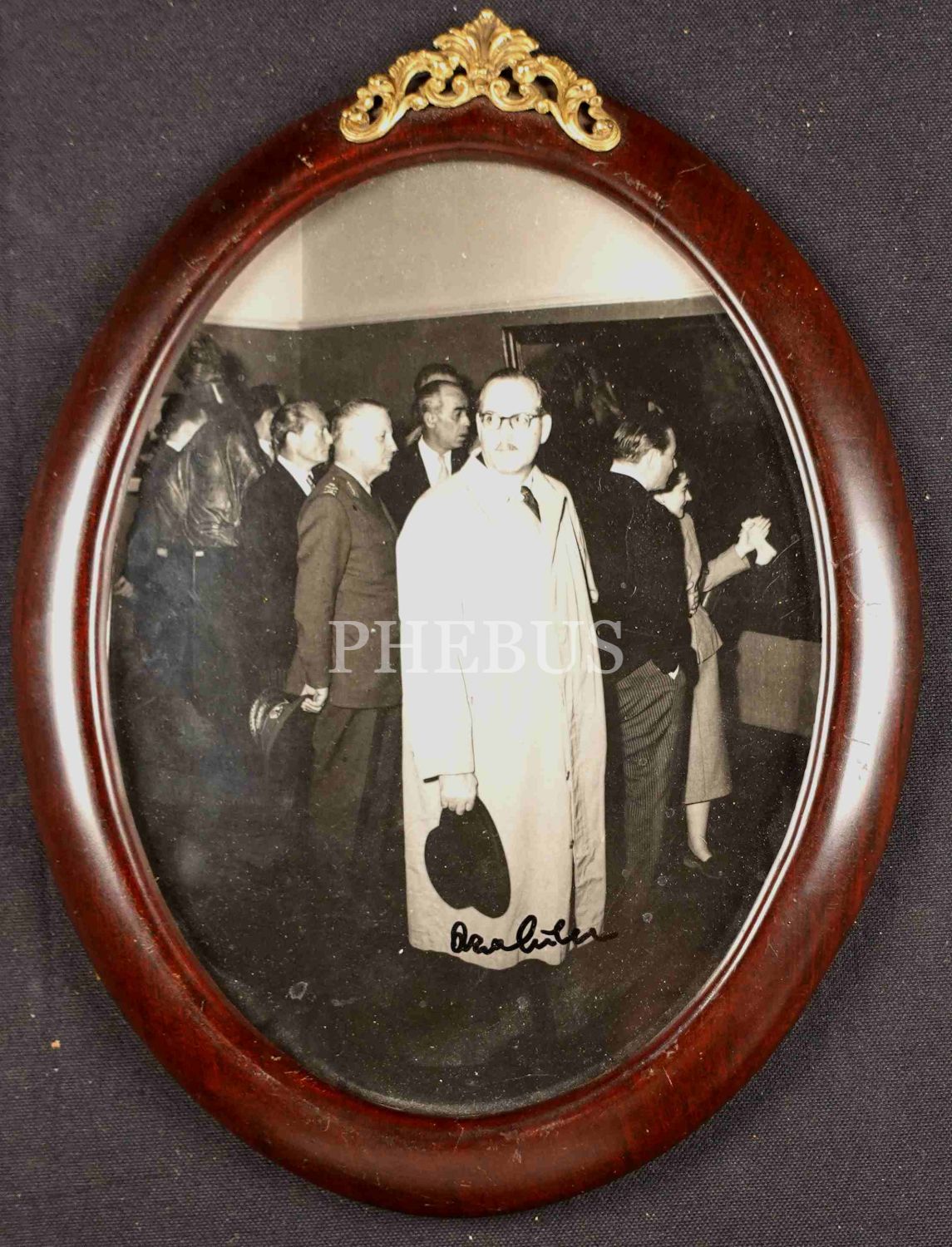 Dönemine ait ahşap oval çerçevesi içinde Ara Güler´den ıslak imzalı Fatin Rüştü Zorlu fotoğrafı, 22x29 cm