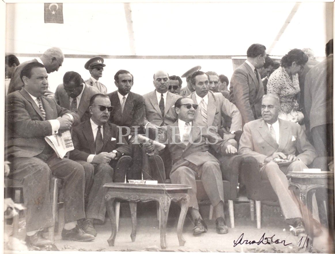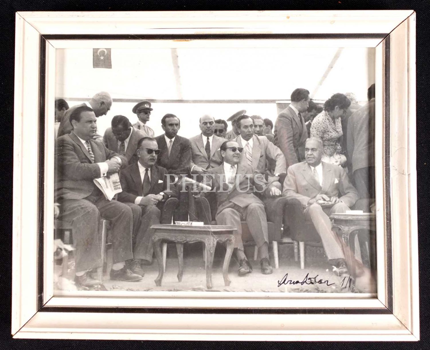 Dönemine ait ahşap çerçevesi içinde Ara Güler´den ıslak imzalı 1/1 [tek nüsha] Adnan Menderes fotoğrafı ile Ara Güler´in bu fotoğrafı imzalarken çekilmiş bir fotoğrafı, 27x22 cm